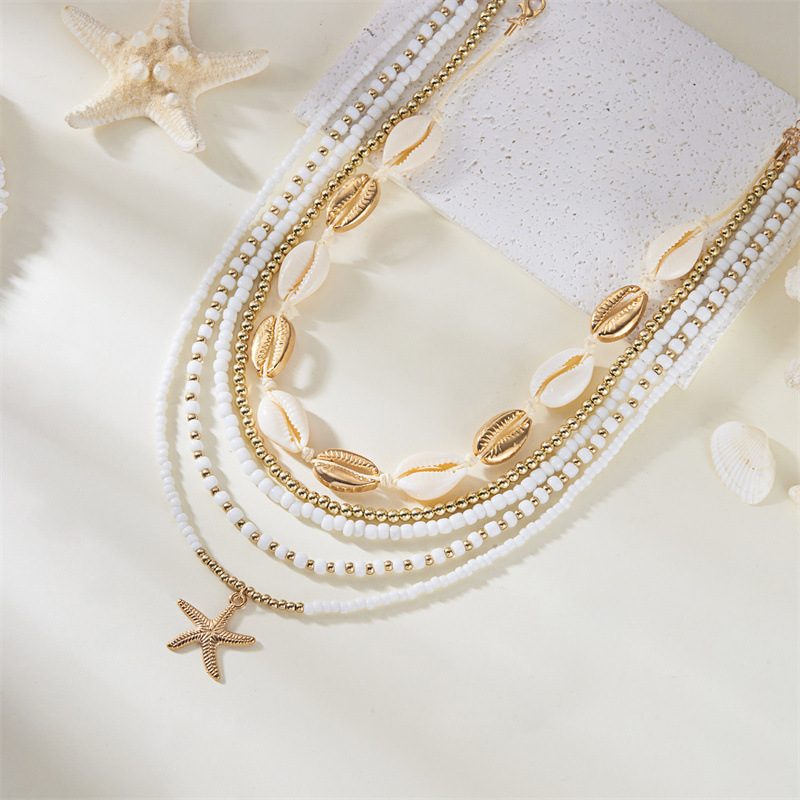 クロスボーダー新作ボヘミアンリゾートスタイルシェルビーズ編み込みネックレスビーチスタイルヒトデビーズ5点セット