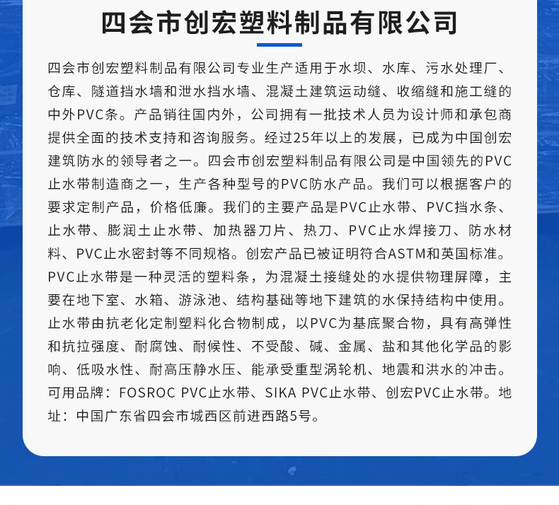 メーカーはPVC止水テープPVCWATERSTOP中間設置型プラスチックシール工事専用防水材を供給しています