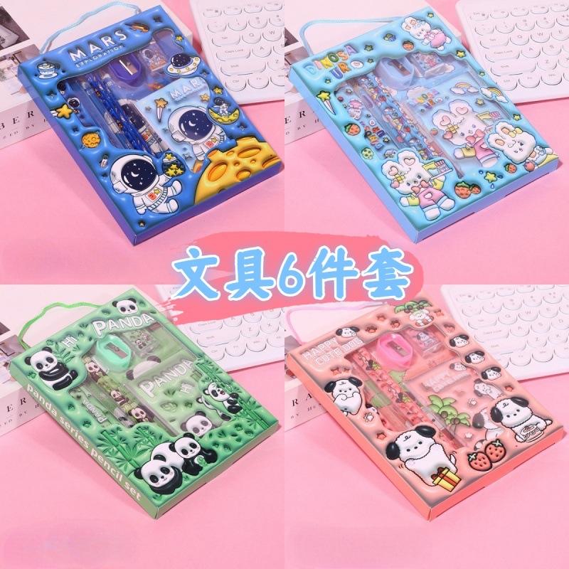卡通六件套学生儿童创意卡通文具套装学习开学儿童节奖励礼品套装