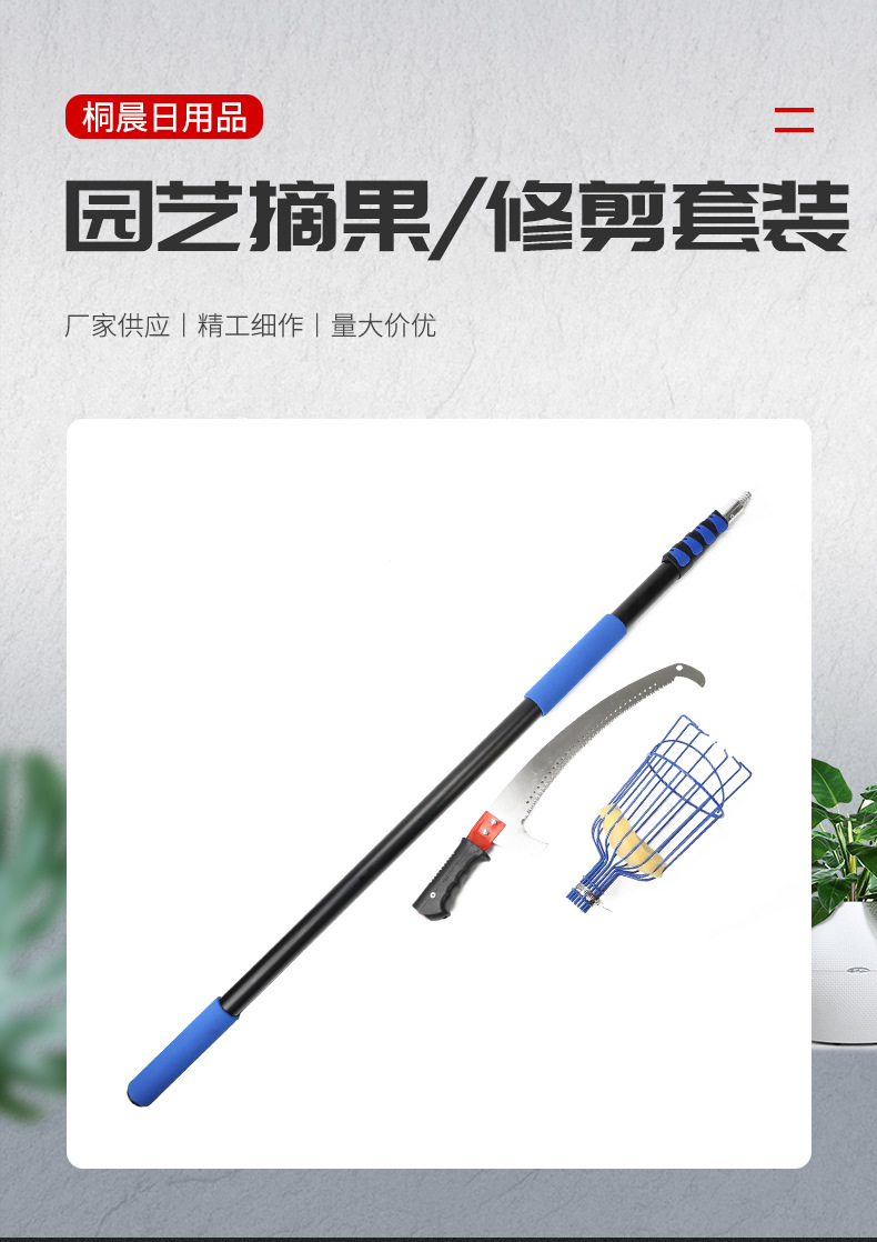 摘果器樹枝鋸強化伸縮棒園芸工具三点セット花園果樹家庭用剪定
