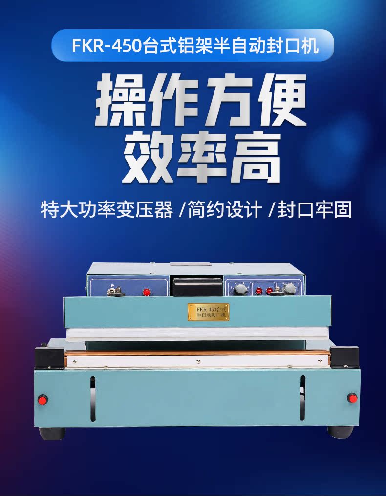 仕様 FKR—450 卓上アルミフレーム半自動シール機—450x8mm—長方形