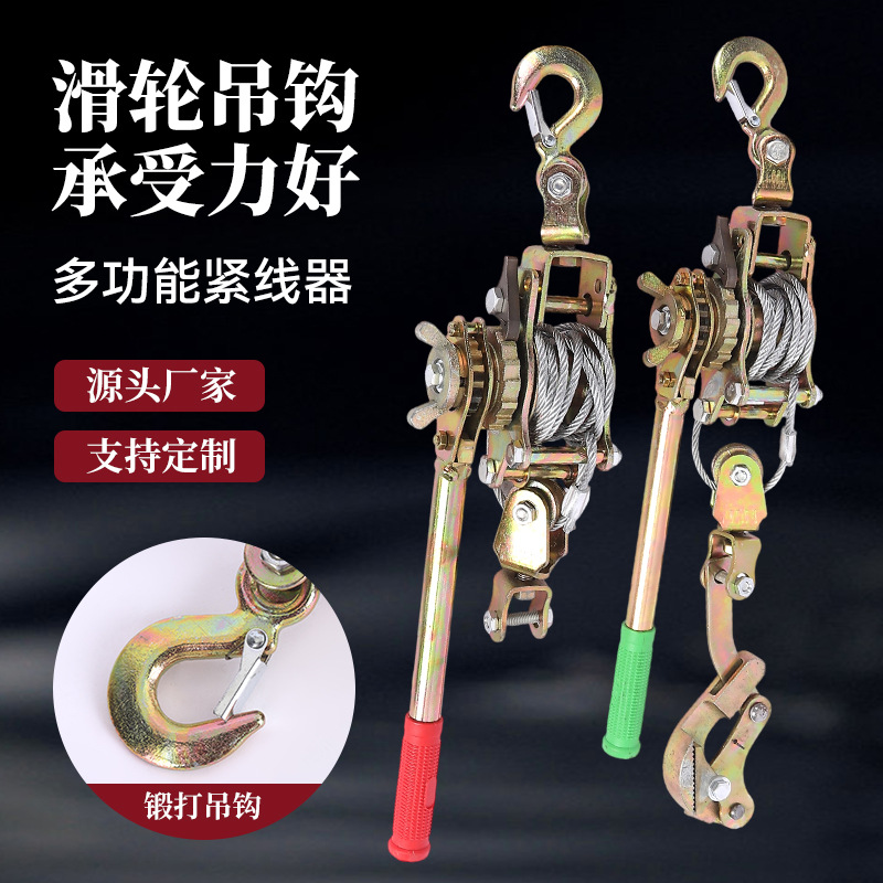 日本式二重フック締付器電力電気工ケーブル締付器ワイヤーロープ万能工具ラチェット締付機クランプ