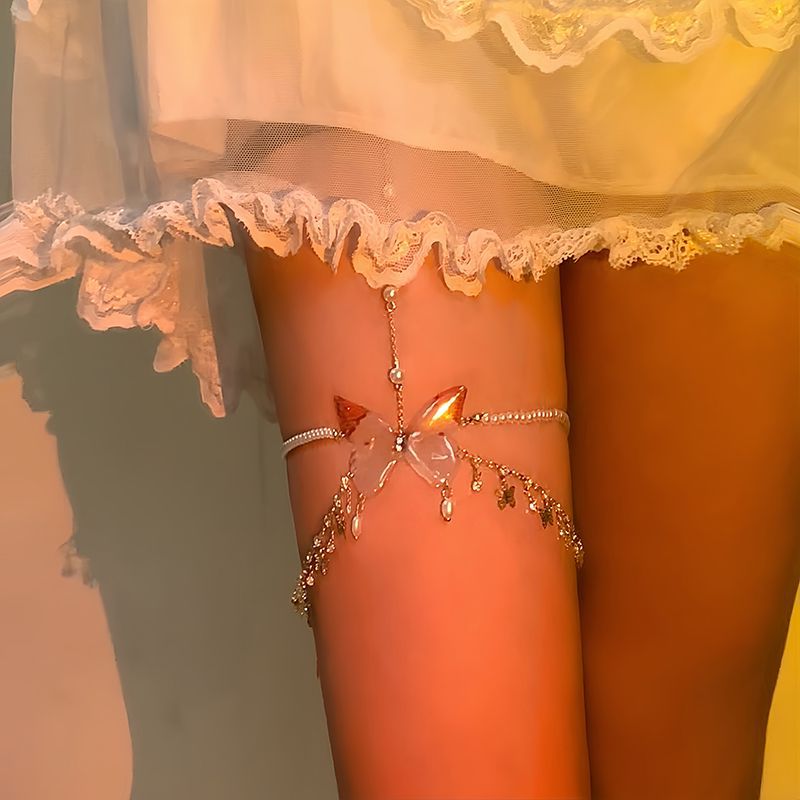 Y-セクシーなホットガールバタフライパールチェーンレッグチェーン,Y-シークレットセクシーホットガールバタフライパールチェーンレッグチェーン