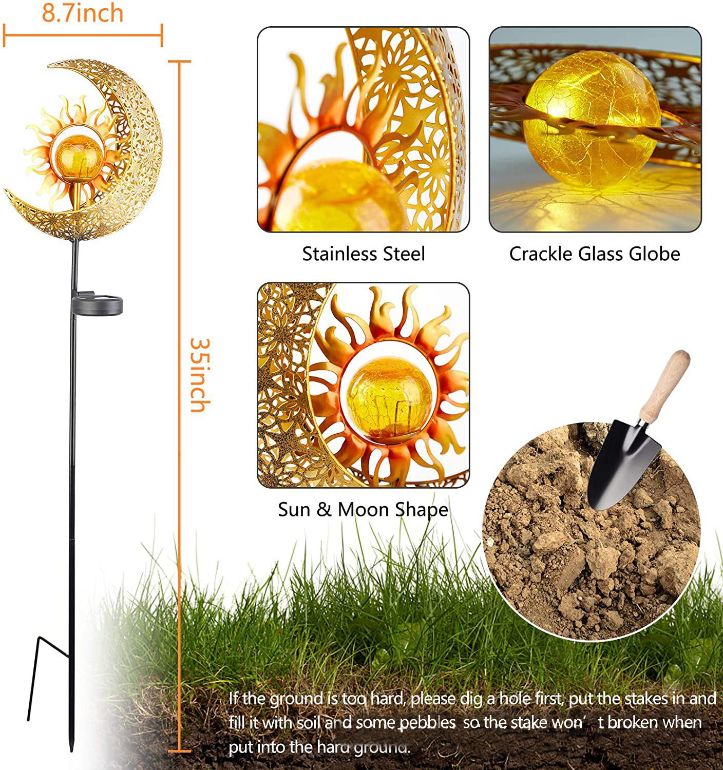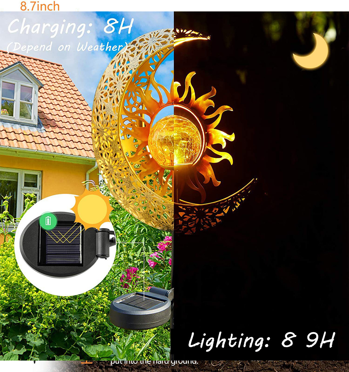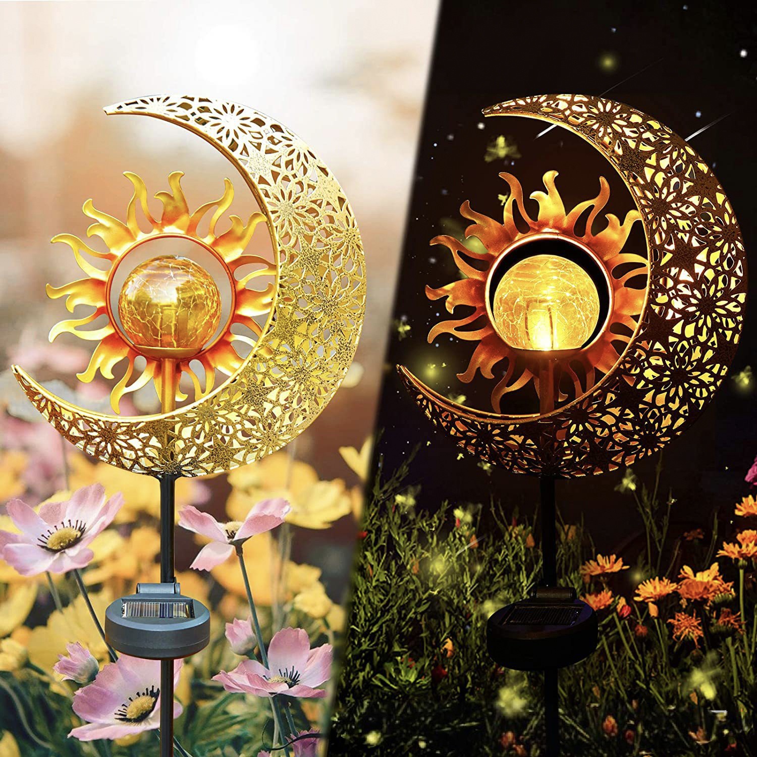 屋外ガーデンソーラーランプムーンサン風景中庭中空ランプアンティークアイアンアースプラグライトアンビエントライト