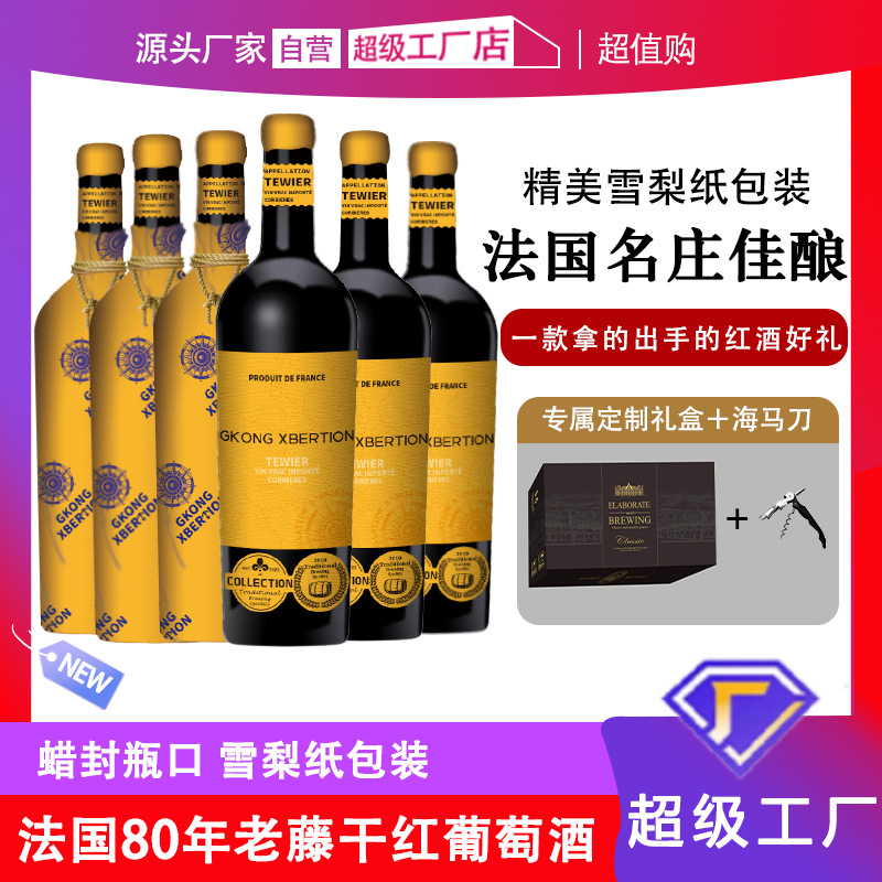 フランス輸入ワイン16度老藤乾紅ワイン女子のほろ酔いフルーツ酒の箱の中のギフトボックスの卸売りは郵送します。