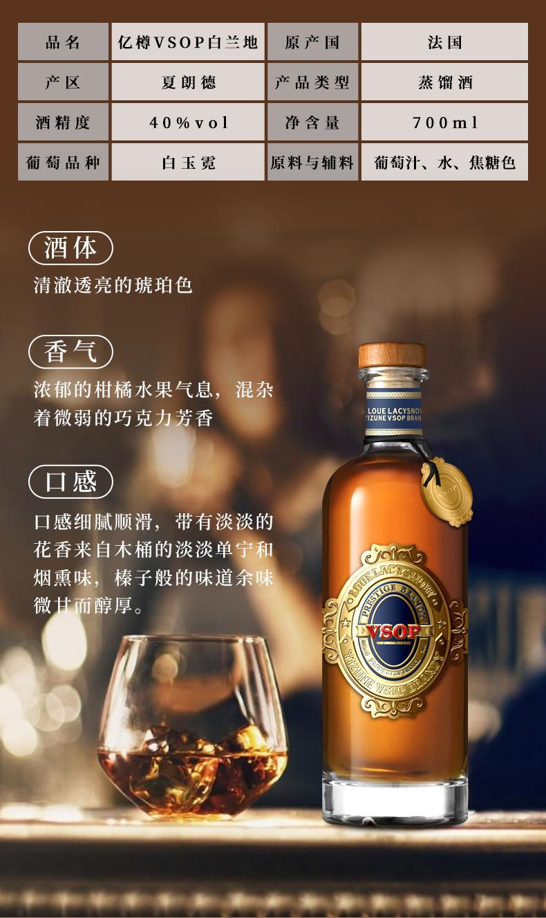 輸入洋酒VSOPブランデーフランスブランドン40度焼酎バーカクテル