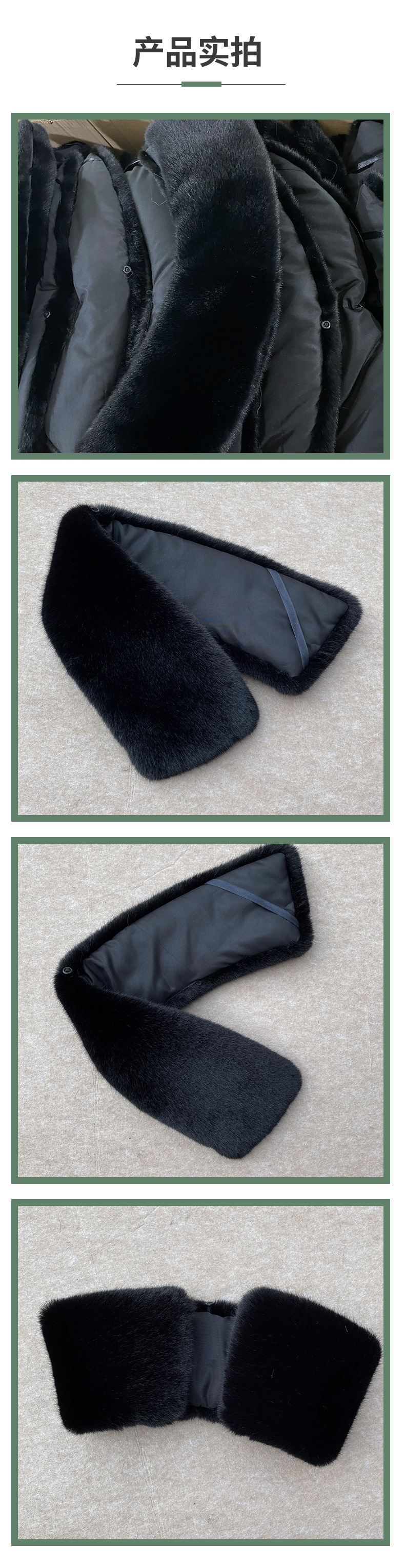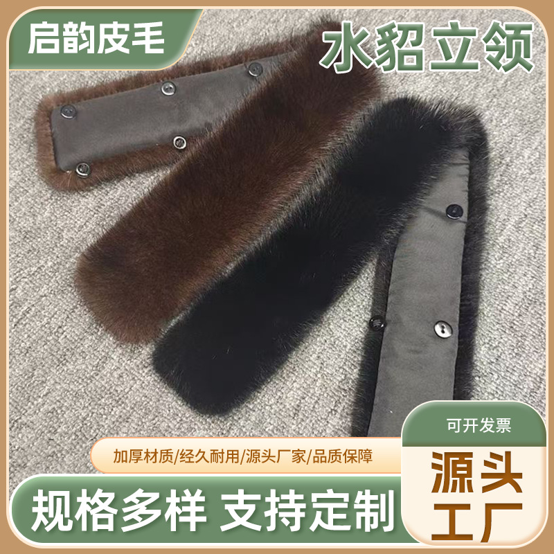 メーカー直供卸売ミンク毛襟男性通用立襟冬保温短毛襟内襟部品黒