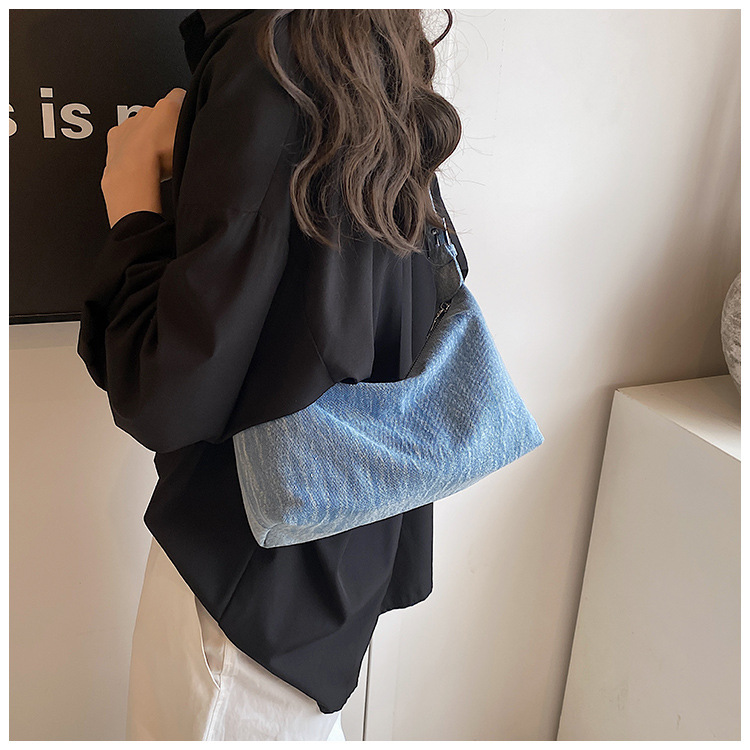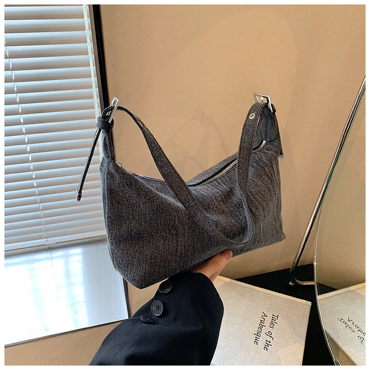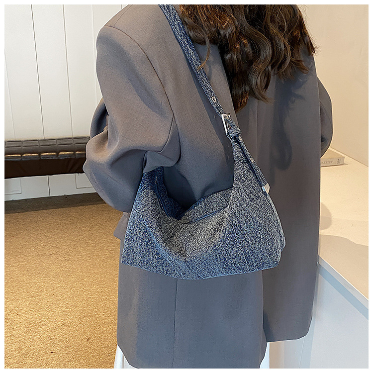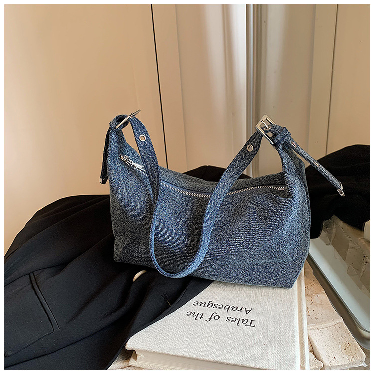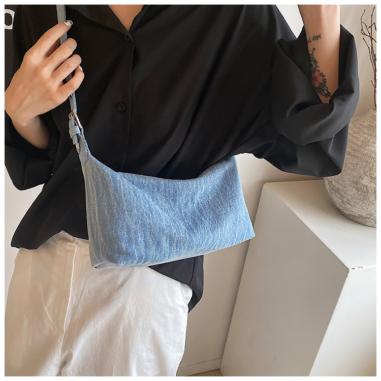 韓国のネットの赤いファッションのデニムのショルダーバッグの女性の新型のギャルの小さい大衆のレジャーの通勤のわきの下で国境を越えて卸売りを包みます。