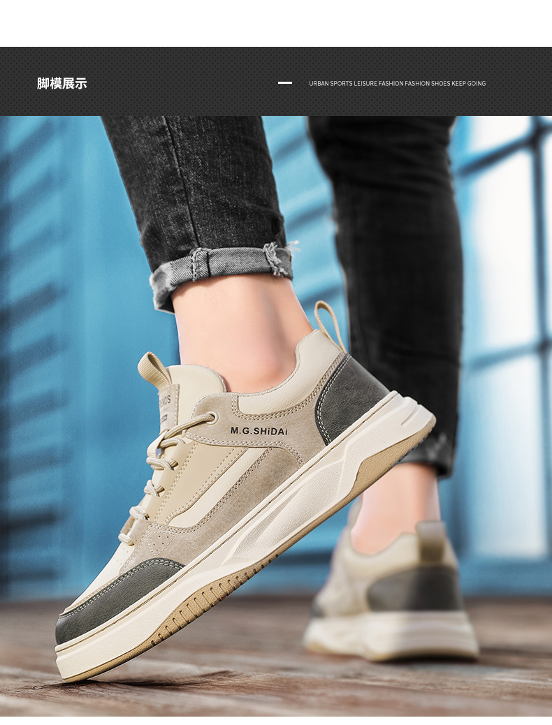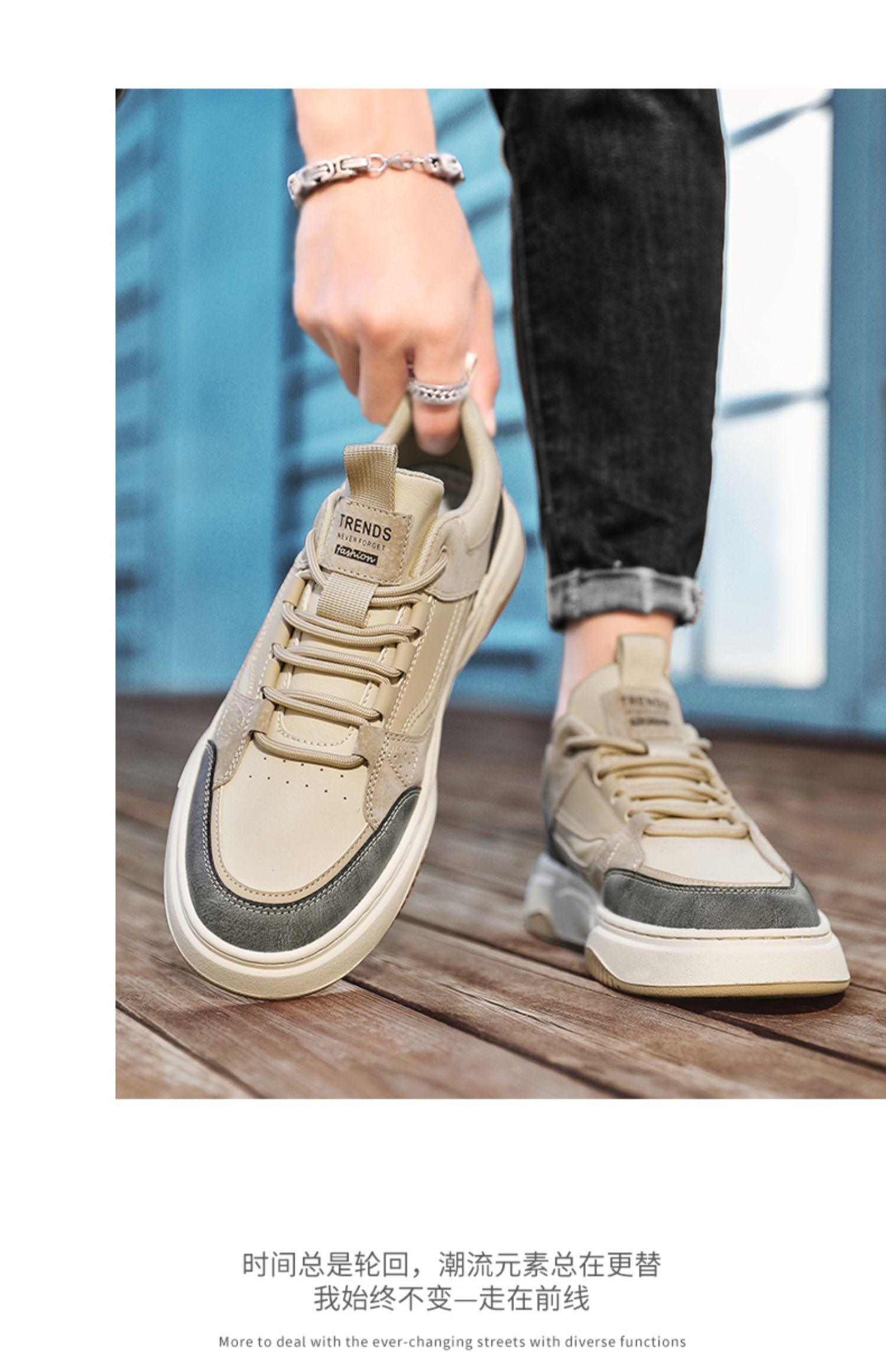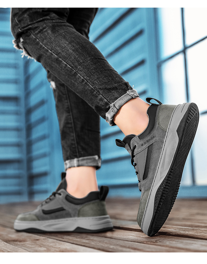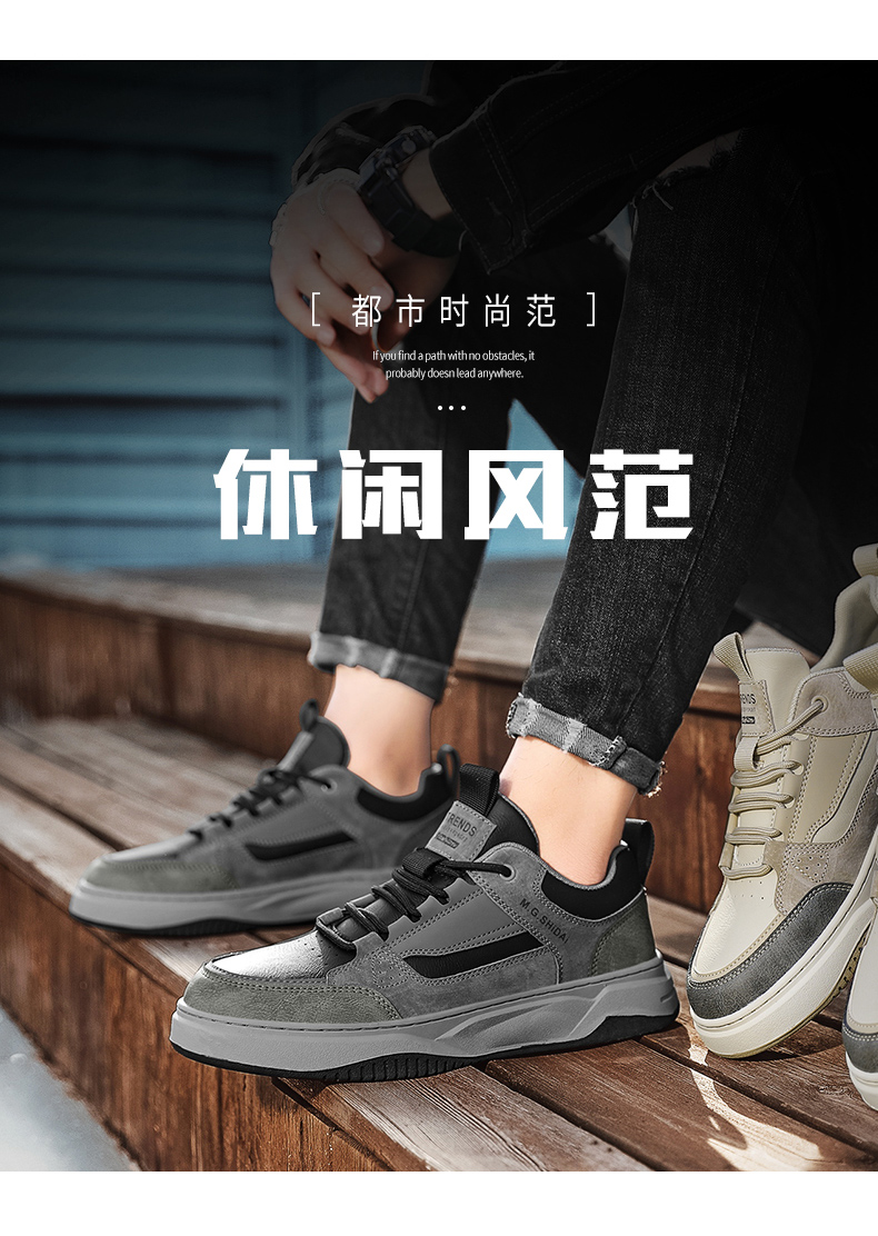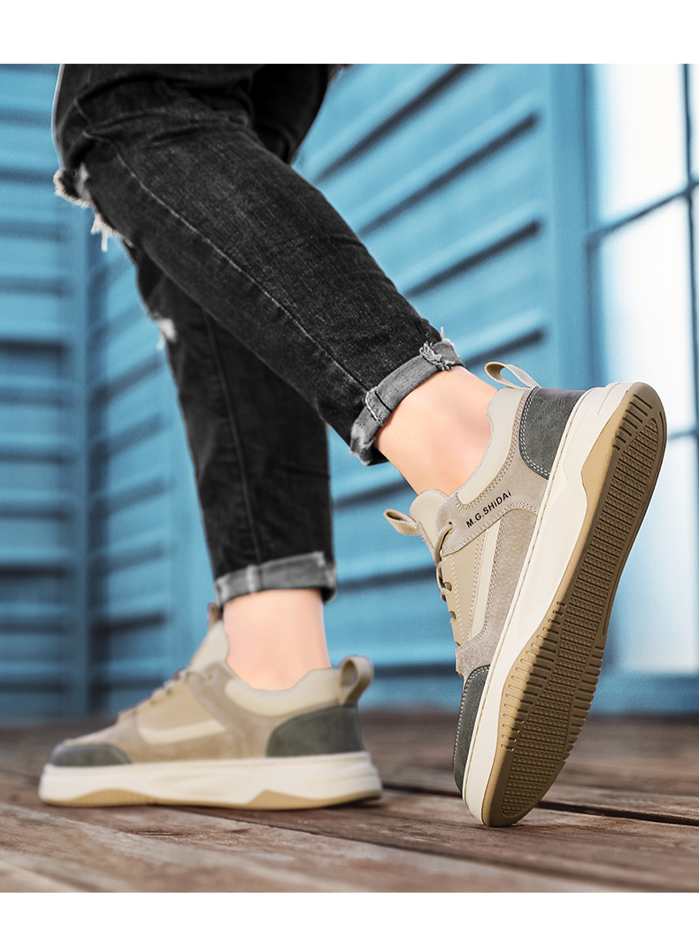 男性靴2025春新作本革高級感厚い底運動板靴男性ソフト底軽やかカジュアルファッション靴男性