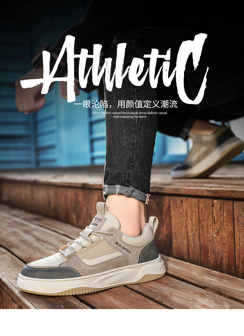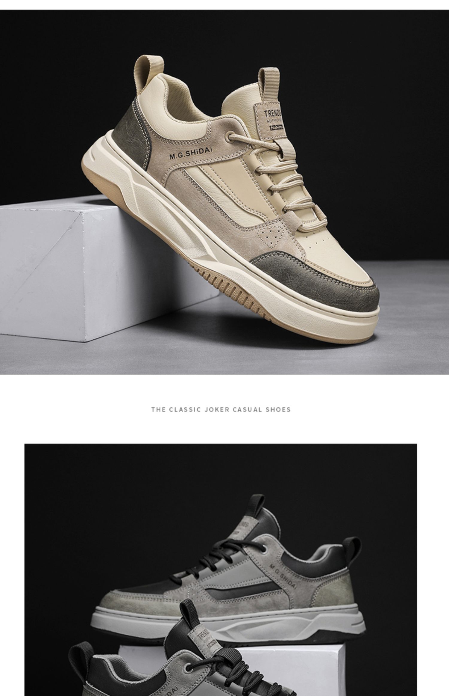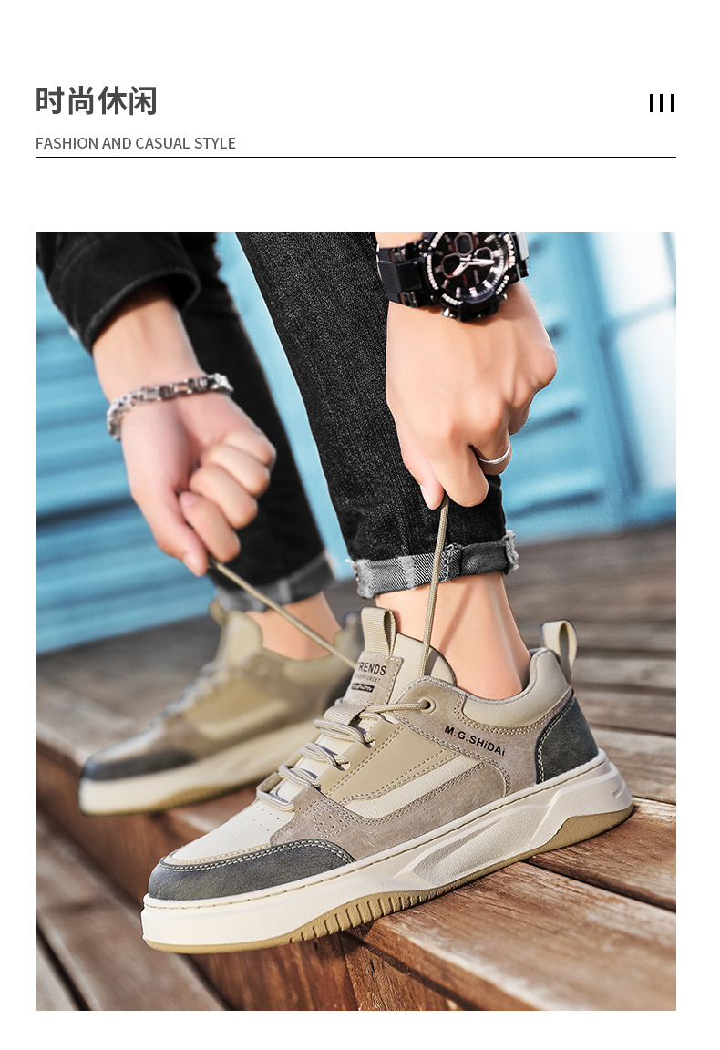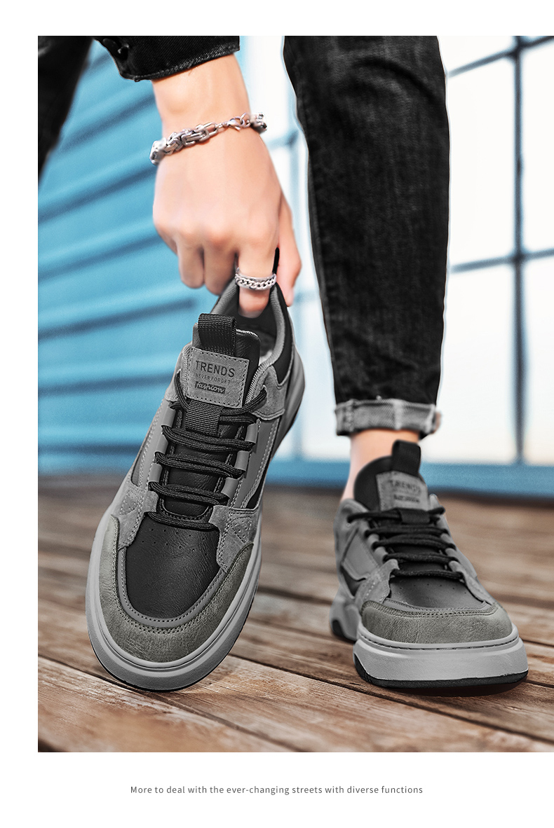 男性靴2025春新作本革高級感厚い底運動板靴男性ソフト底軽やかカジュアルファッション靴男性