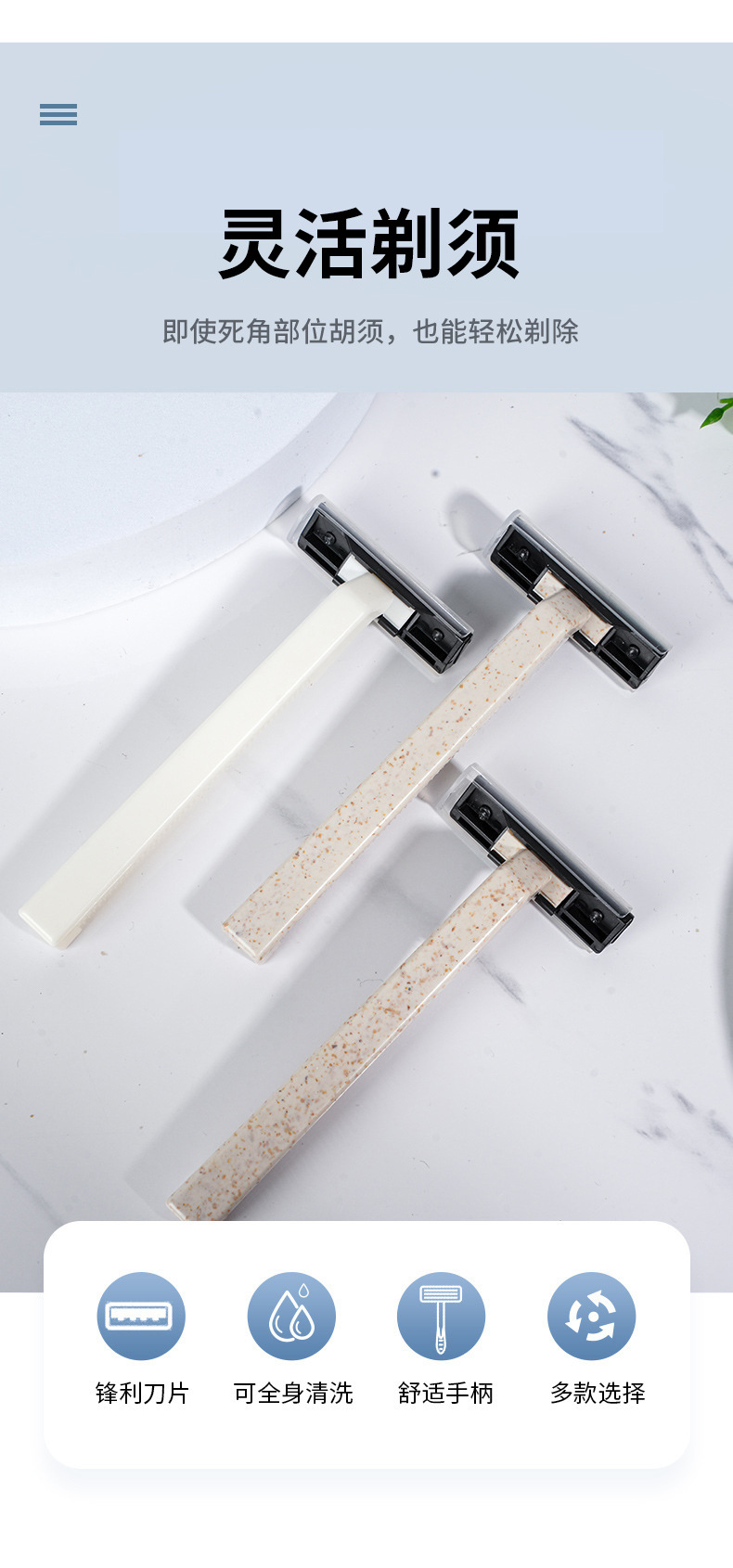 MB-08円底ホテルホテル民宿白錆鋼ブレード髭剃り両面安全復古髭剃り