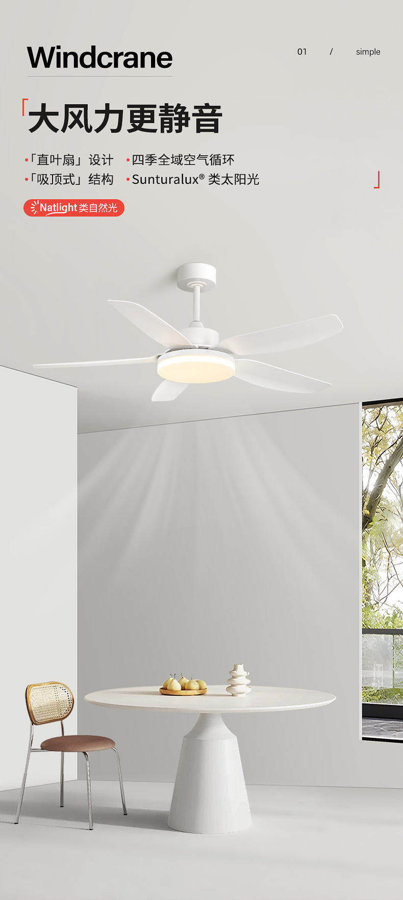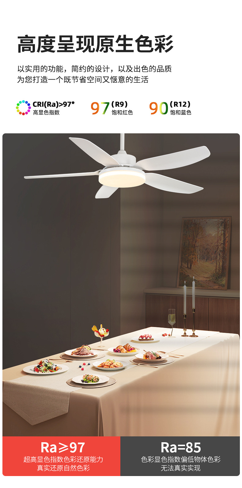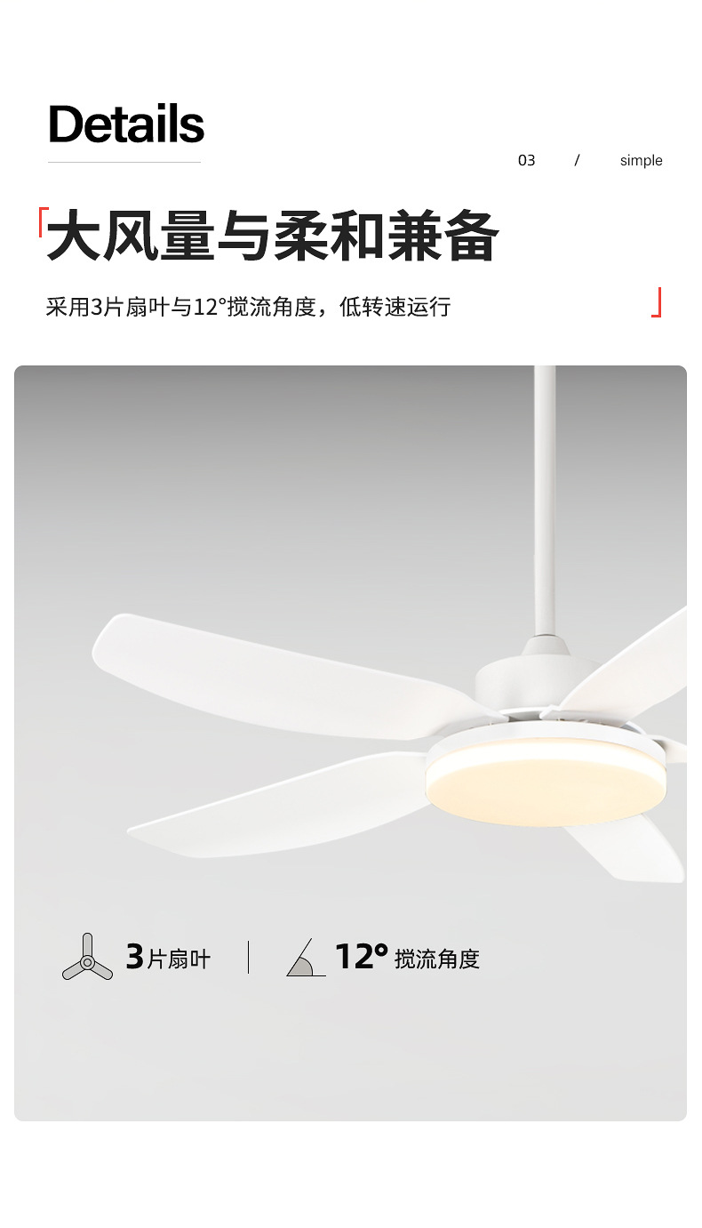 レストラン直葉吊り扇ランプ2025年新型シンプルクリーム風客間北欧静音大風力ファンランプ
