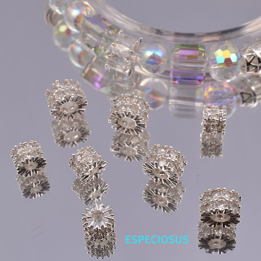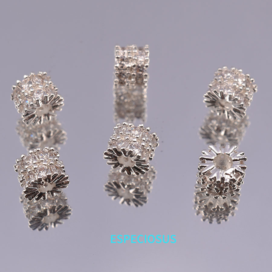 亮银保色锆石隔珠隔片diy饰品配件串珠手链雪花桶珠散珠手工材料