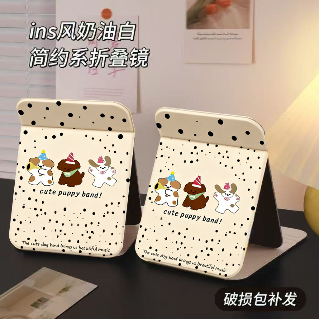 シンプルな波点化粧鏡学生寮のデスクトップは折り畳み鏡ins風高颜値携帯化粧鏡を立てることができる
