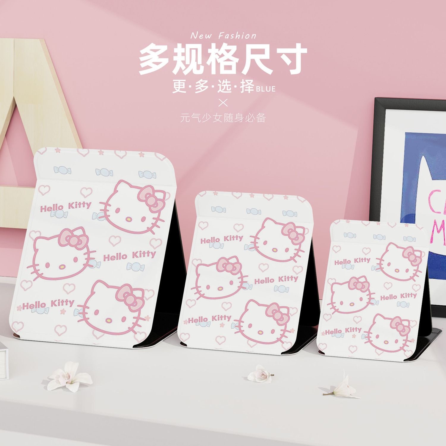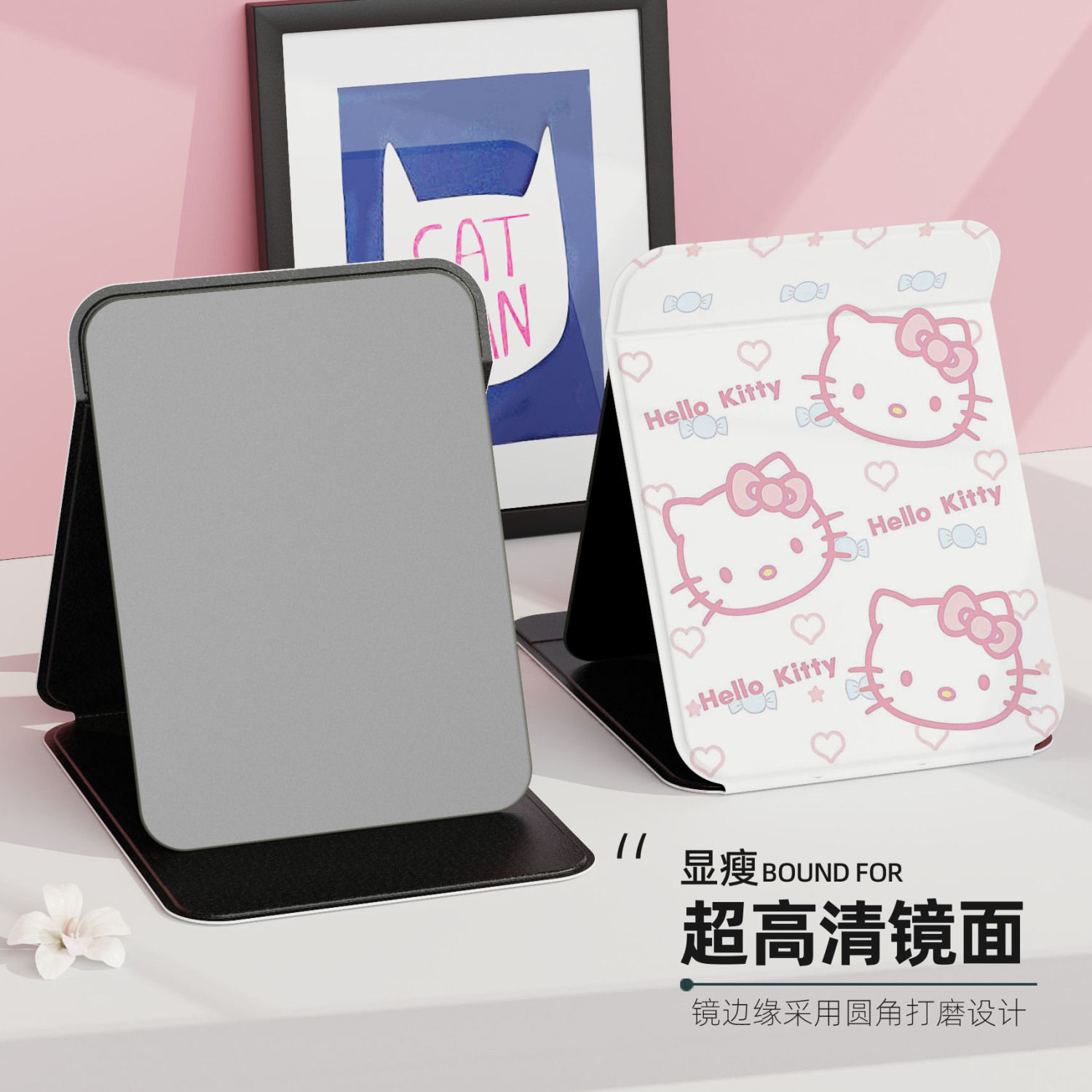 KT猫折叠化妆镜子卧室学生宿舍随身便携式台式手拿梳妆镜大号美颜