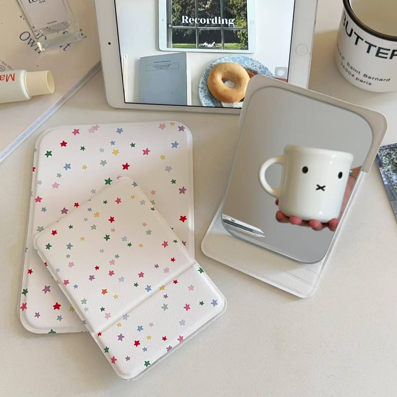 新款彩色星星折叠小镜子化妆镜高颜值学生卧室宿舍桌面可立梳妆镜