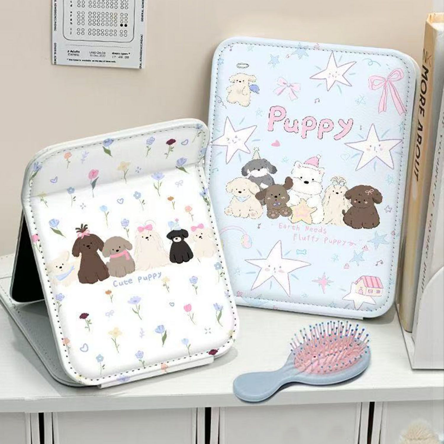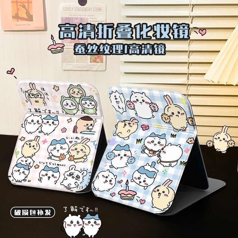 かわいいジーカワ漫画化粧鏡オフィス折り畳み鏡寮用デスクトップ化粧鏡化粧鏡