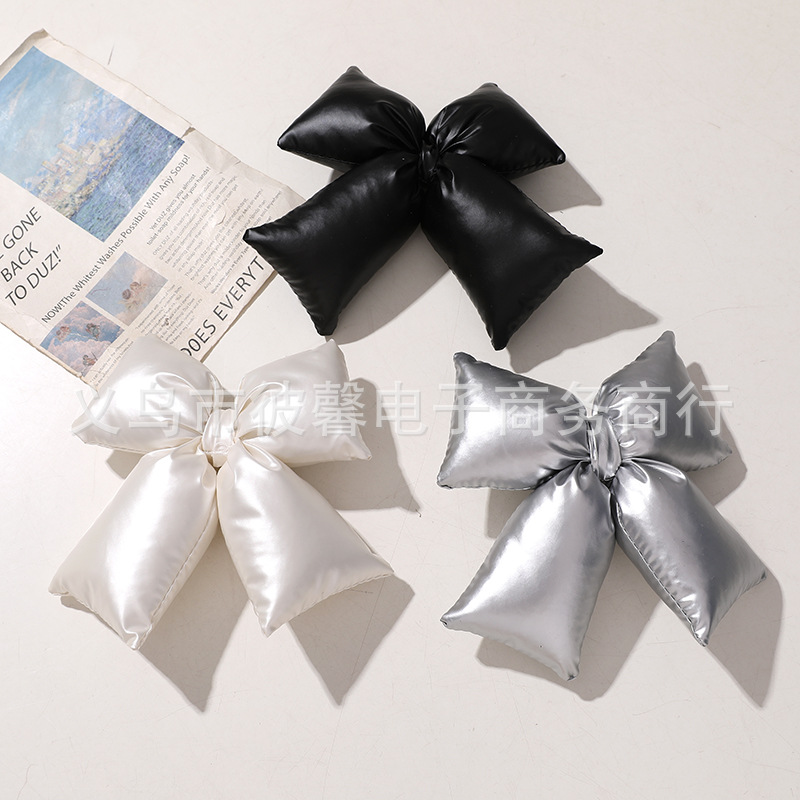 ins韩版简约亮皮质充棉蝴蝶结配饰DIY服装胸针发饰抓夹辅料配件