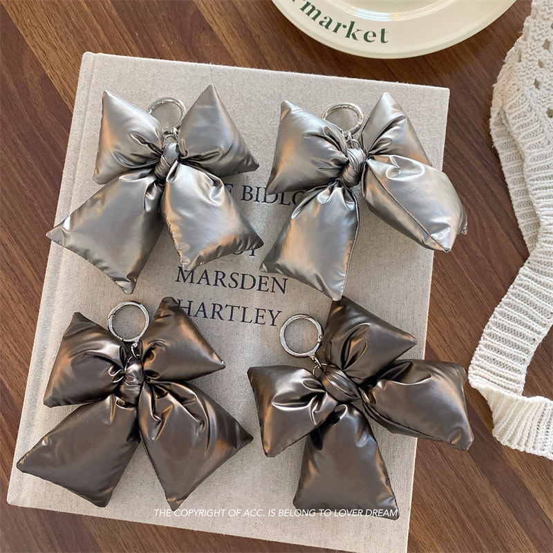 韩国ins新款纯色仿皮蝴蝶结钥匙扣 时尚高级质感挂件百搭包包挂饰
