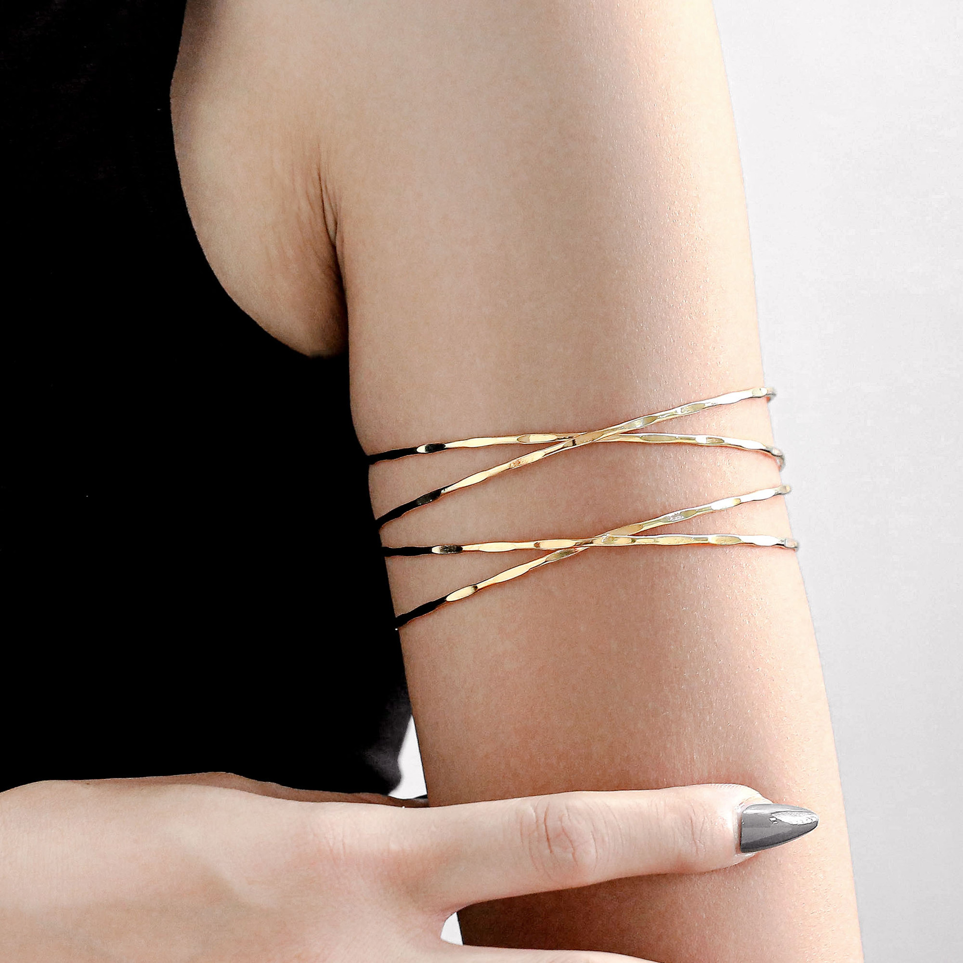 亚马逊欧美跨境批发镂空多层交叉时尚夸张个性臂环开口可调节手镯