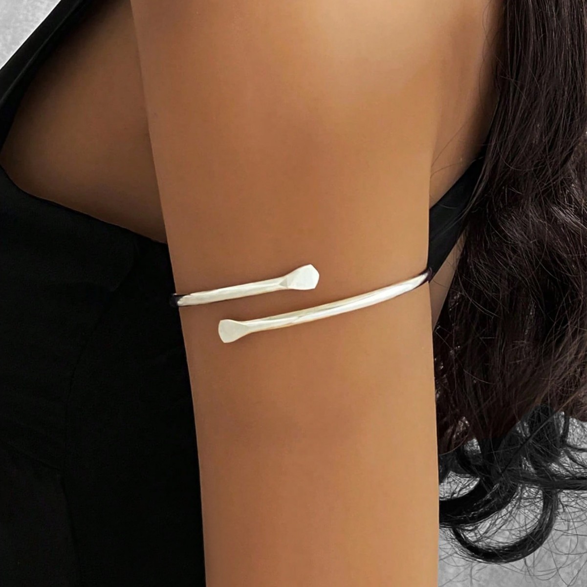 シンプルな透かし彫り三層金属アームリング個性幾何学ヒップホップパンク小衆アームブレスレット開口は身体チェーンを調節できる