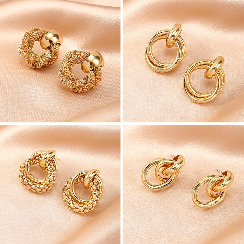 国境を越えた欧米風ファッション透かし彫りリングデザイン感ピアス多層巻き輪イヤリング気質ネット赤耳飾り