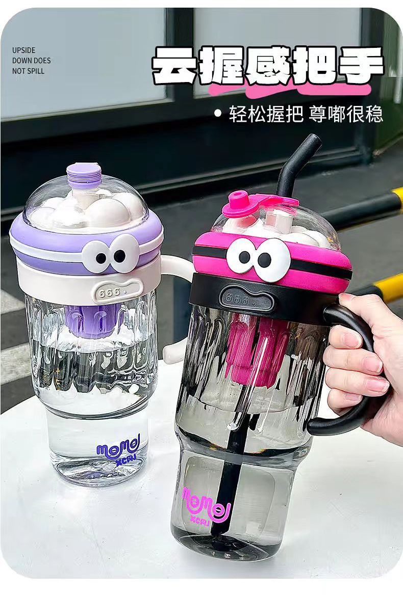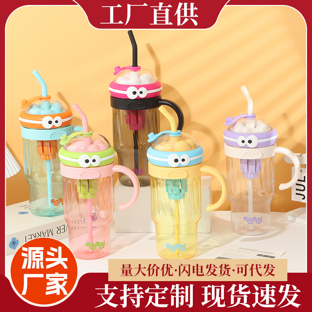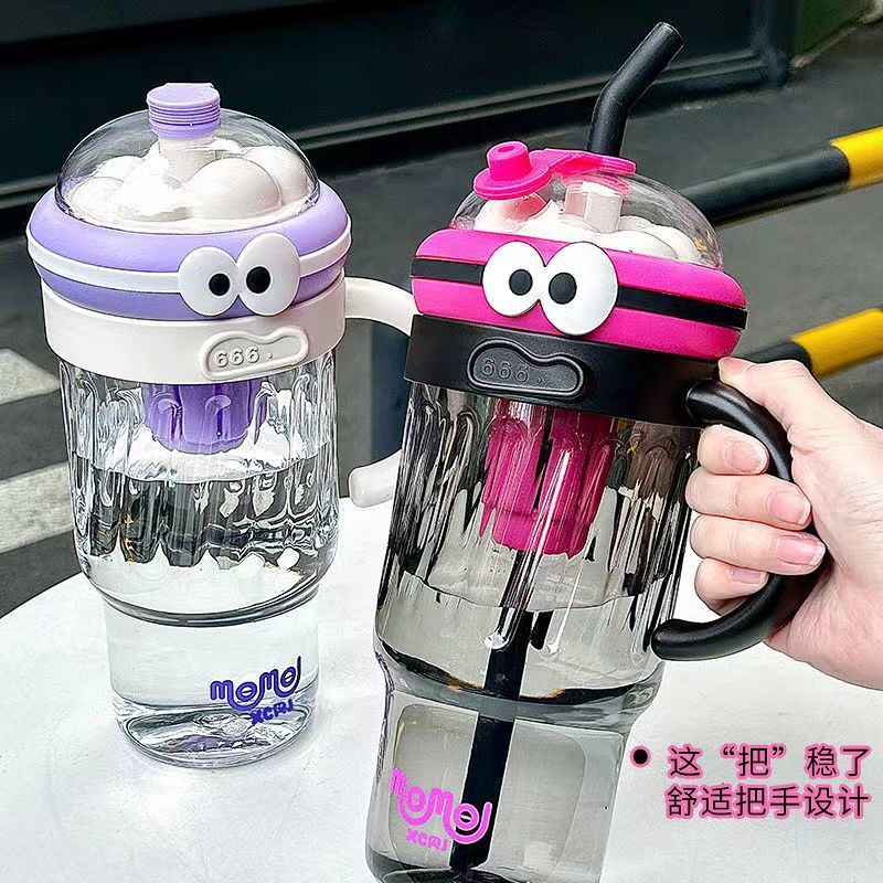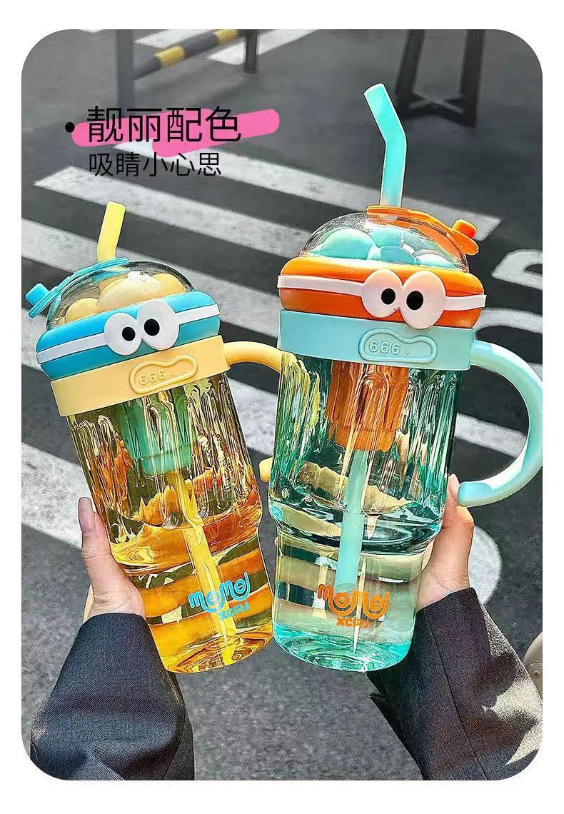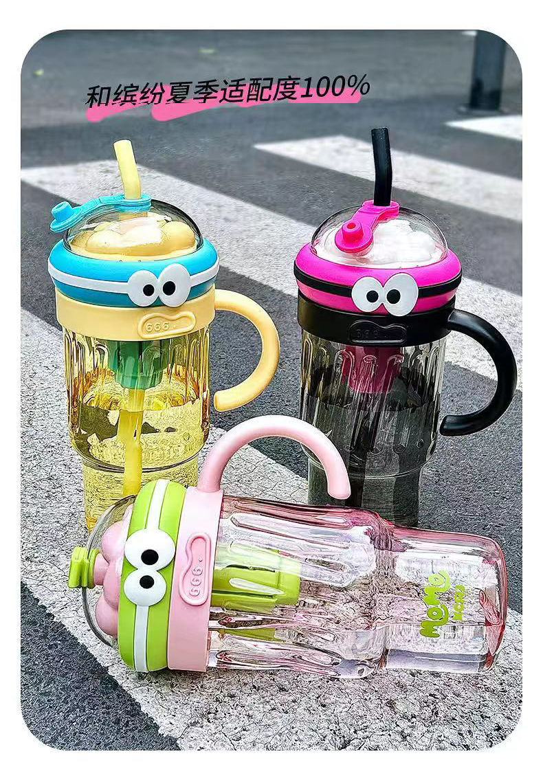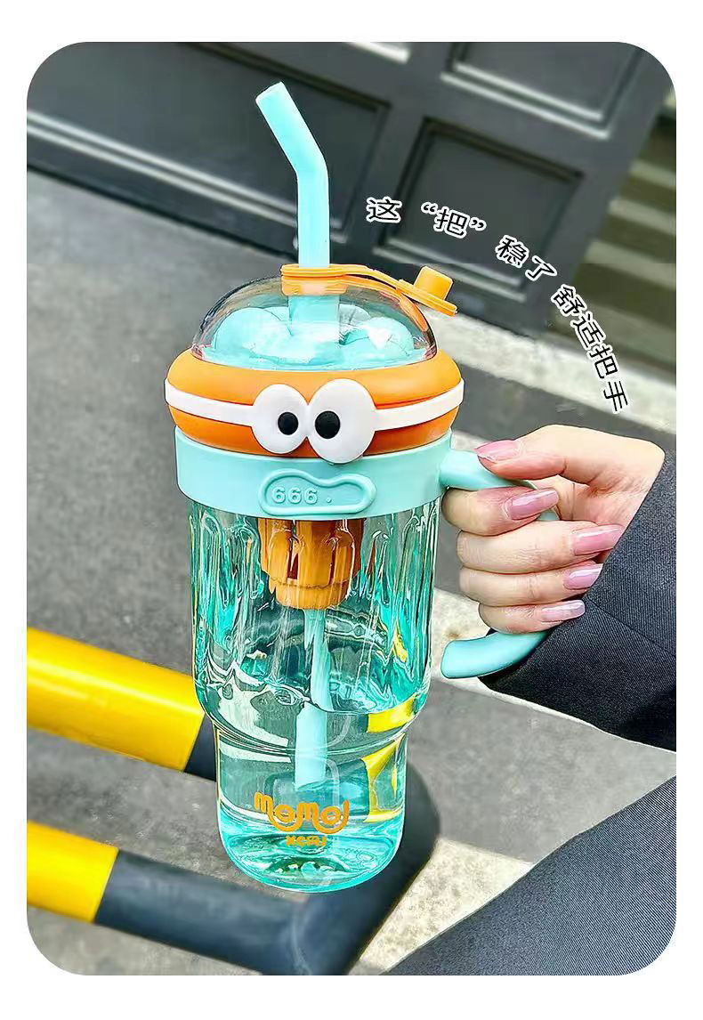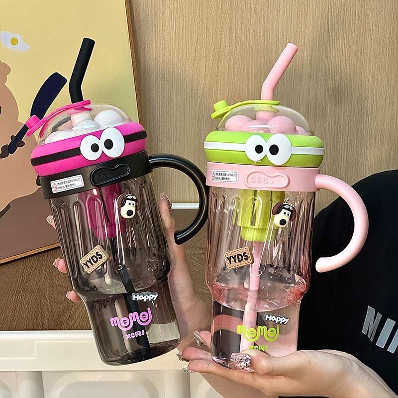 夏のドーパミン大容量プラスチックカップ、かわいい大きな目の男の子、ハンドル付きの見栄えの良いストローカップ、落下防止アイスカップ