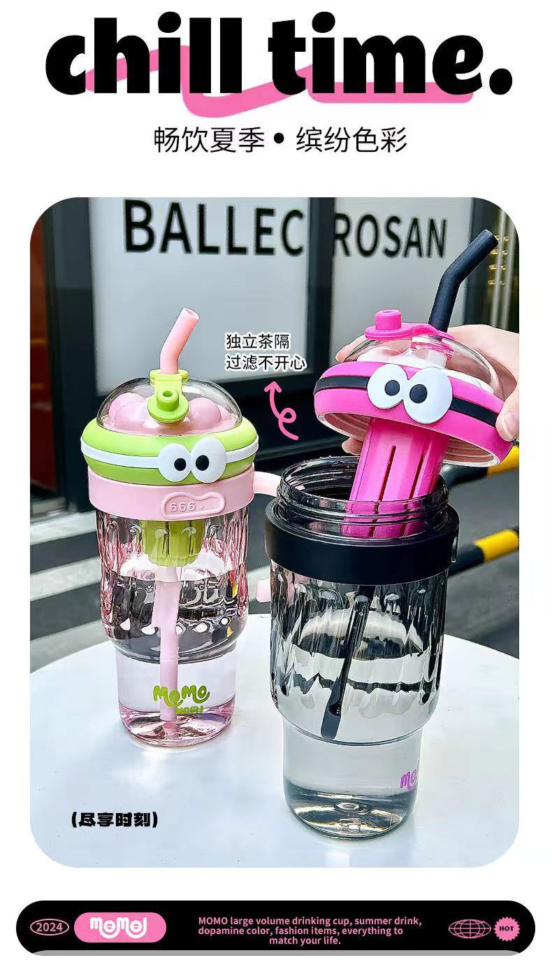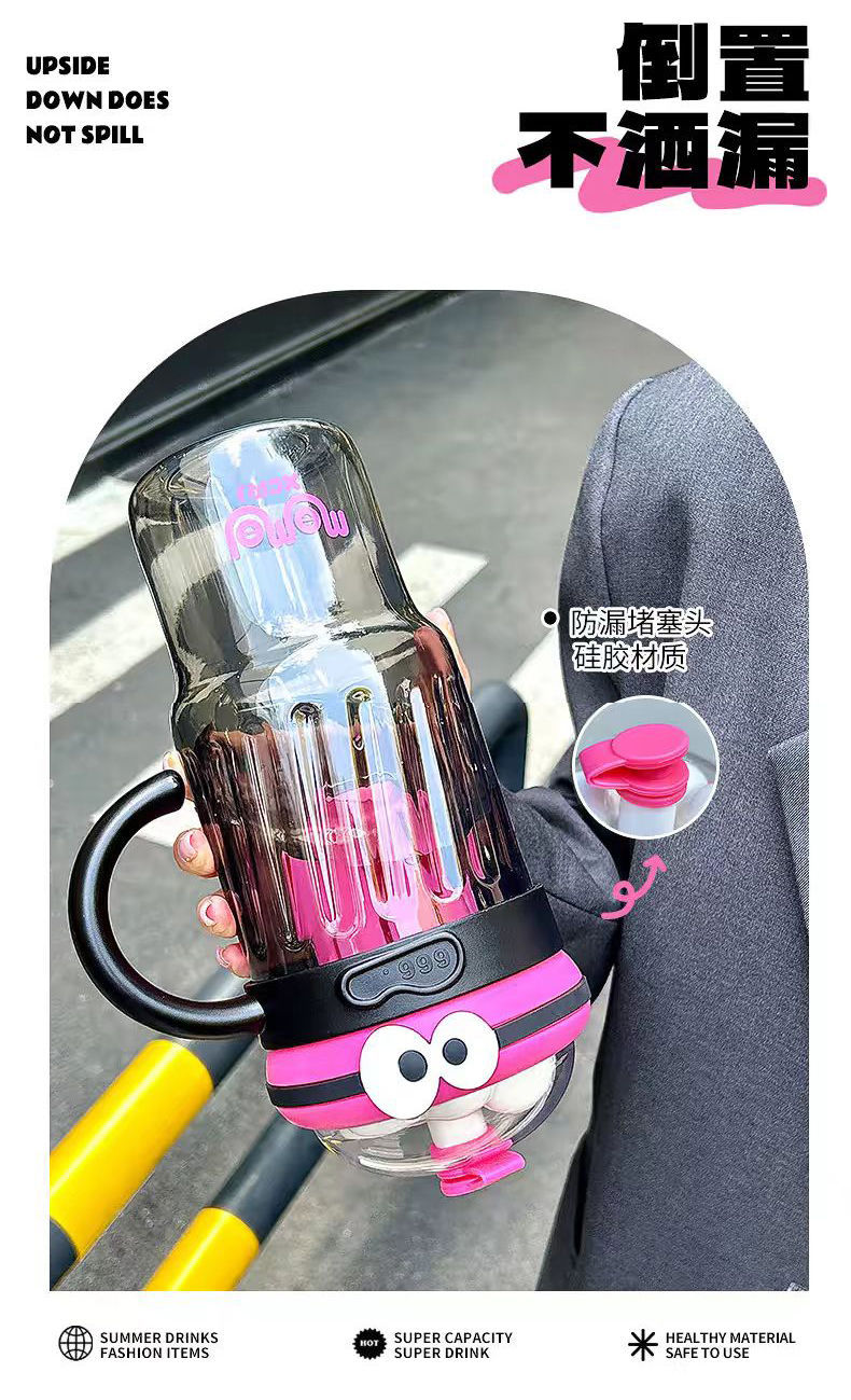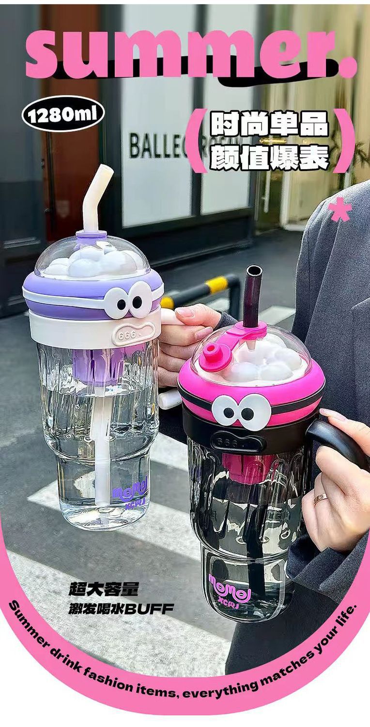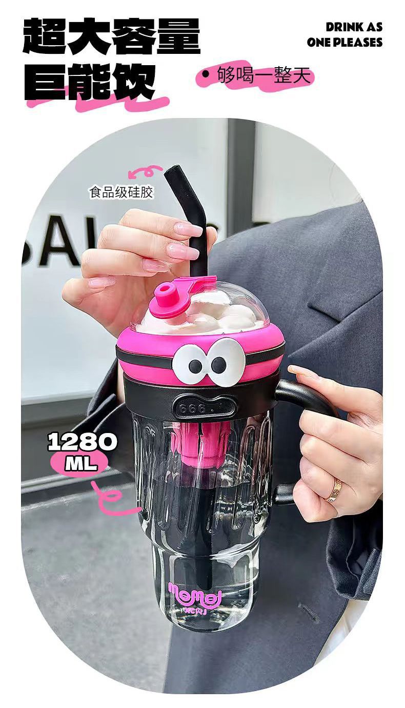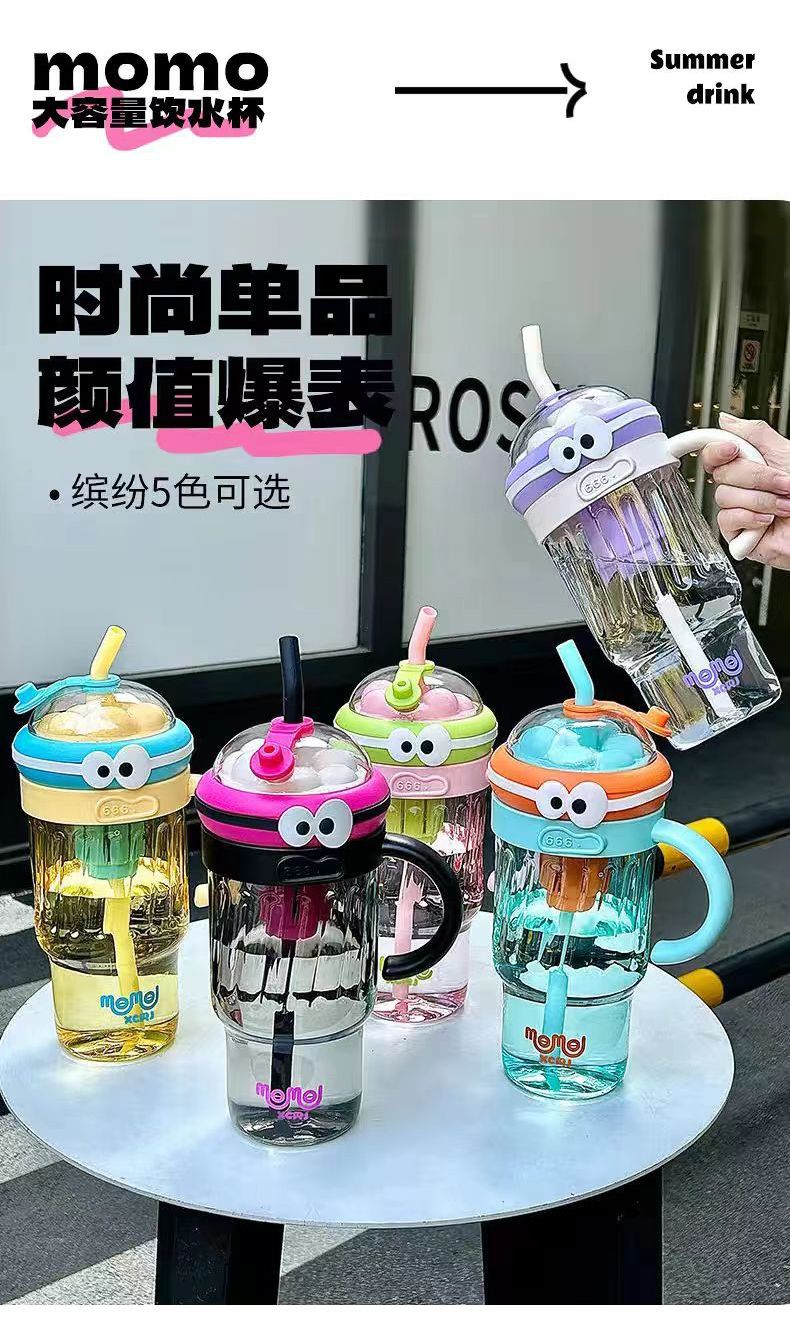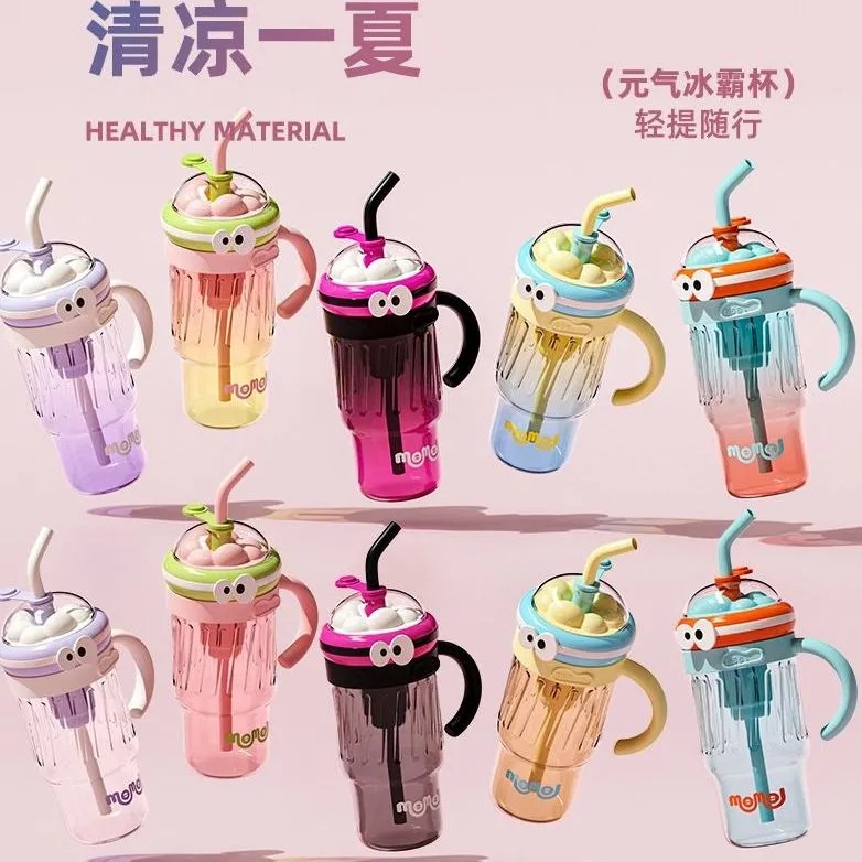 夏のドーパミン大容量プラスチックカップ、かわいい大きな目の男の子、ハンドル付きの見栄えの良いストローカップ、落下防止アイスカップ