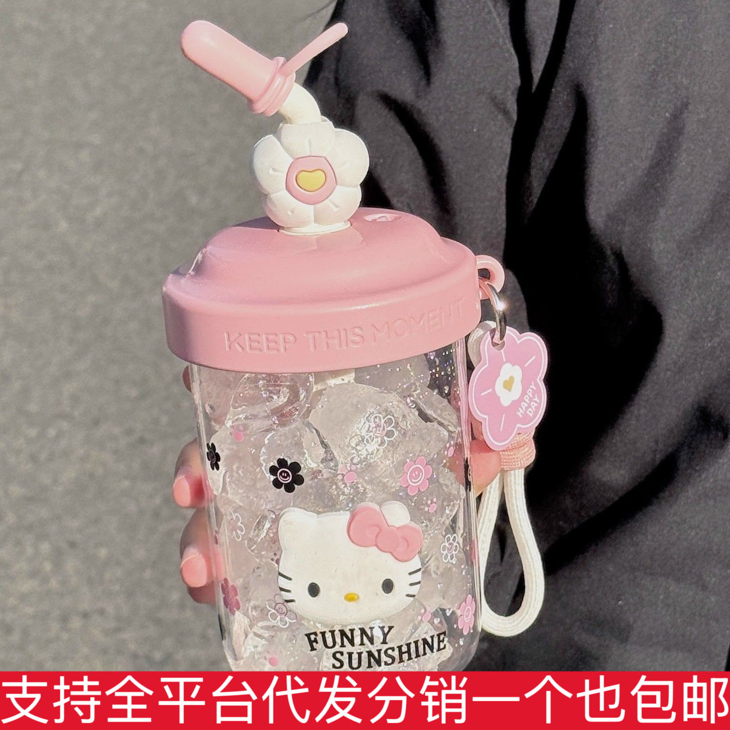 高颜値水杯2024新女子カップ二重飲ストローカップ学生かわいい手が随行している