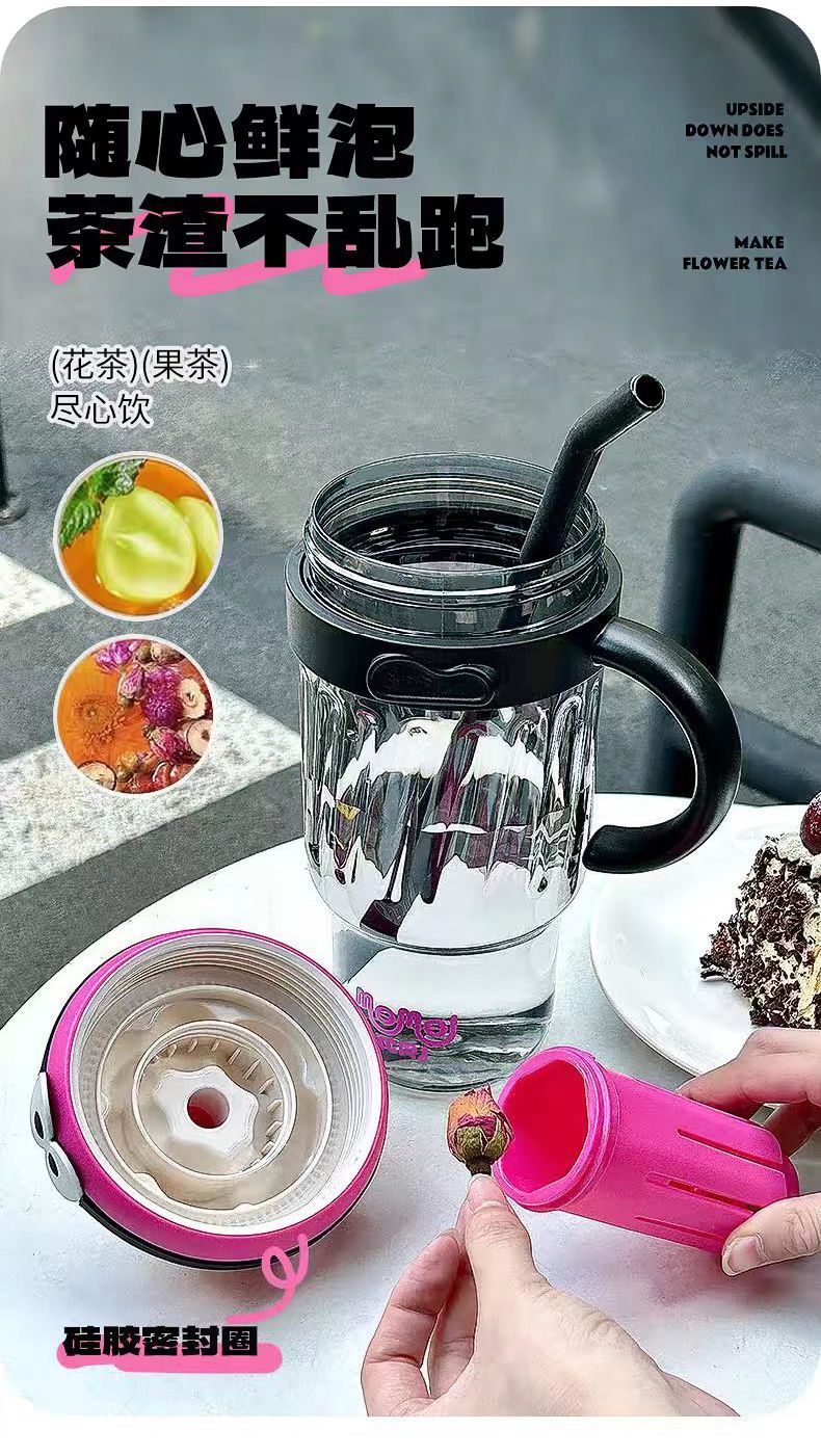 見た目の良い女性向けの新しい高温耐性ウォーターカップ 2025 ストローカップ学生ポータブル茶水分離プラスチックカップ