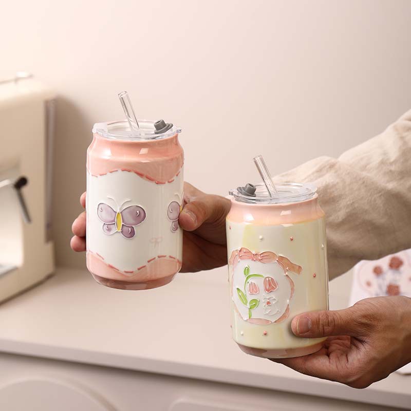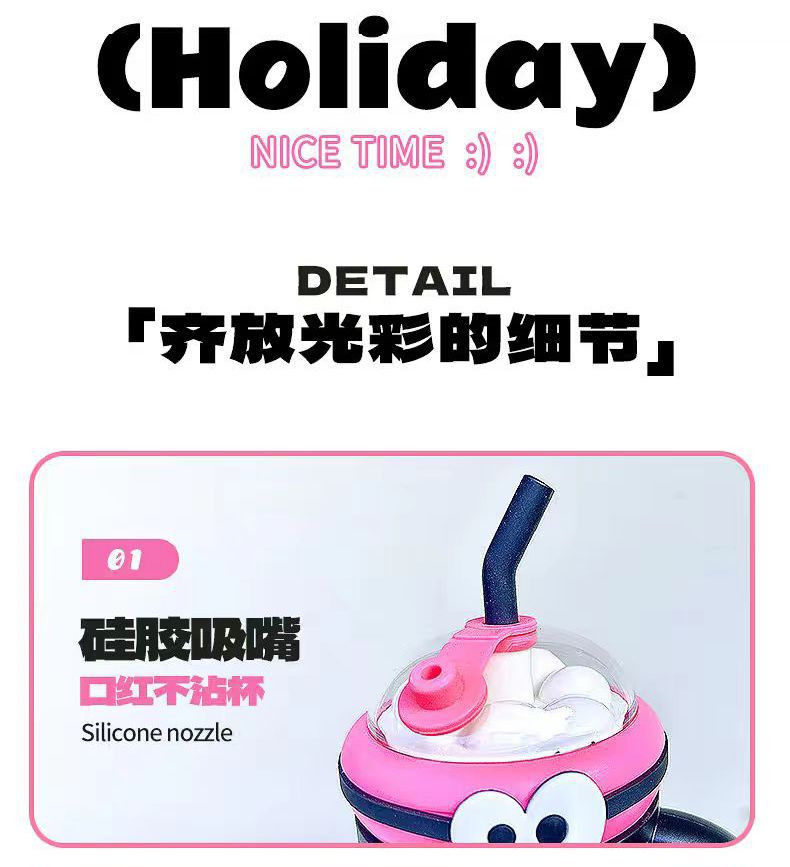 景德镇同款高颜值大容量喝水杯家用学生办公室可爱超萌吸管杯带盖