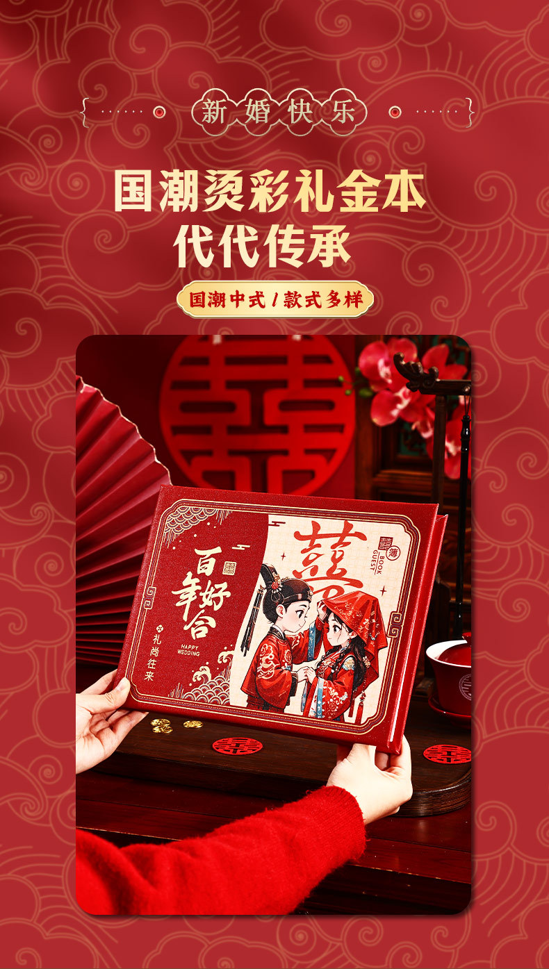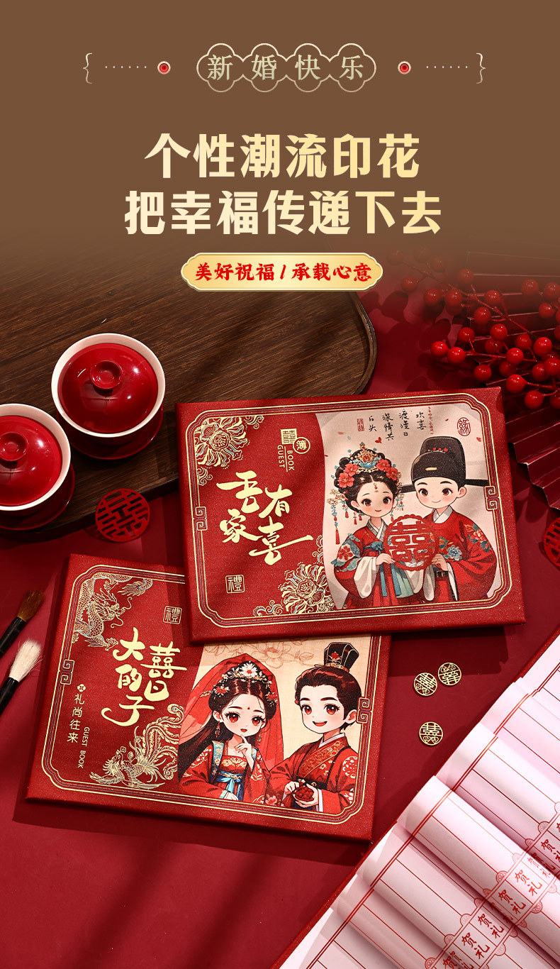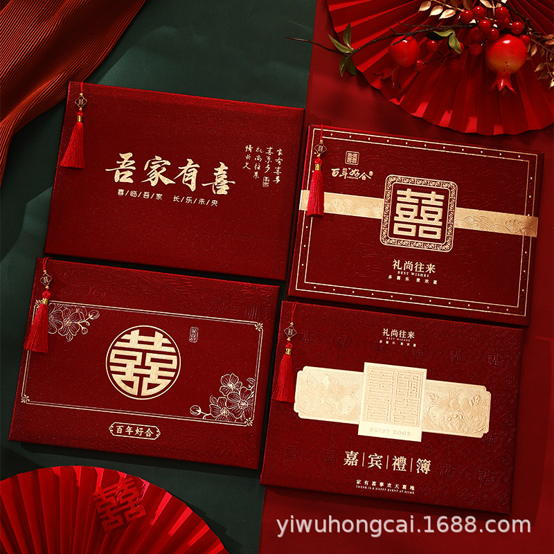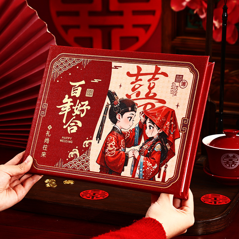 中式结婚礼金本植绒婚庆薄嘉宾人情记账本签名签到册喜庆用品批发