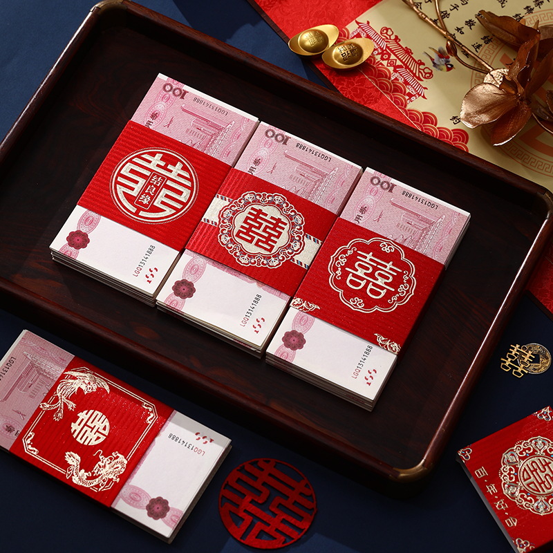 喜字万元封束銭束銭束金葱フロスト万元銭セット結婚祝い用品婚約カード銭シール