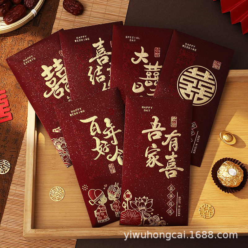 結婚式の赤い封筒 S サイズ 2025 新しいスタイルの結婚式の赤い封筒、クリエイティブなハイエンドのミニ結婚式のドアブロック