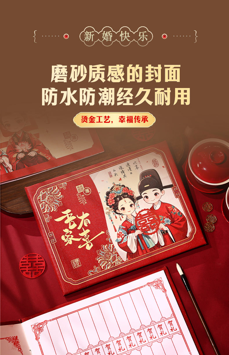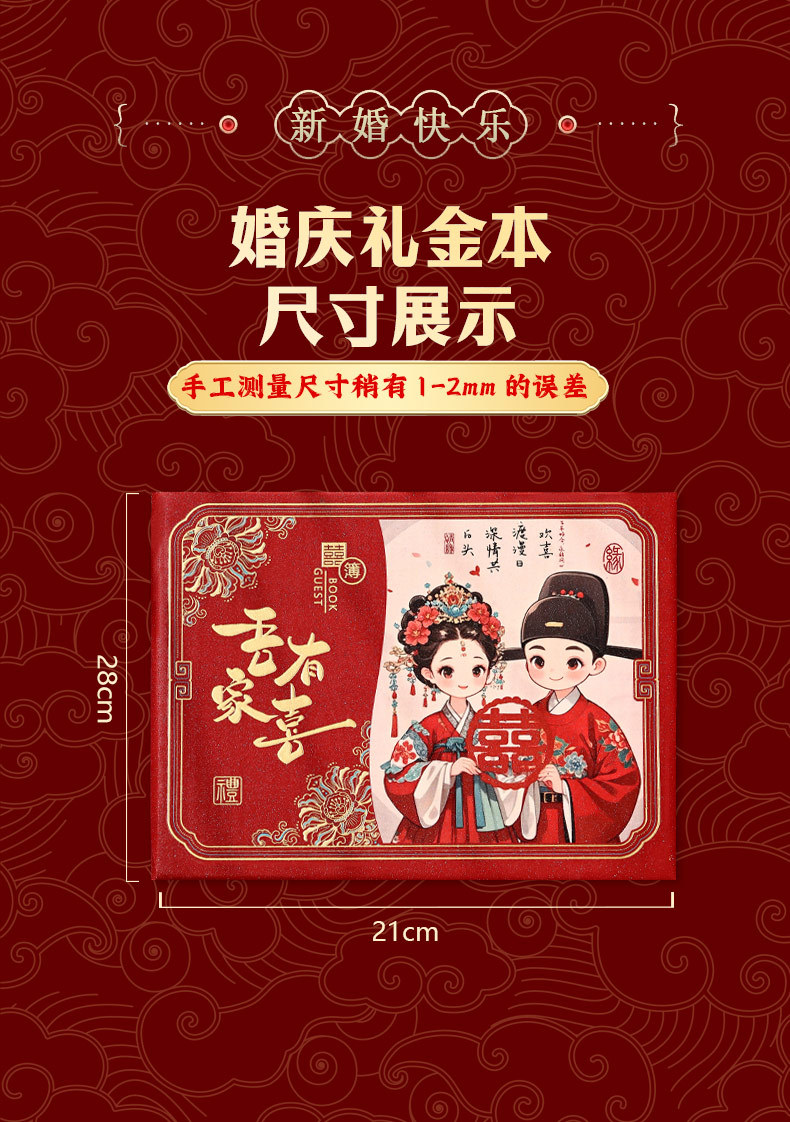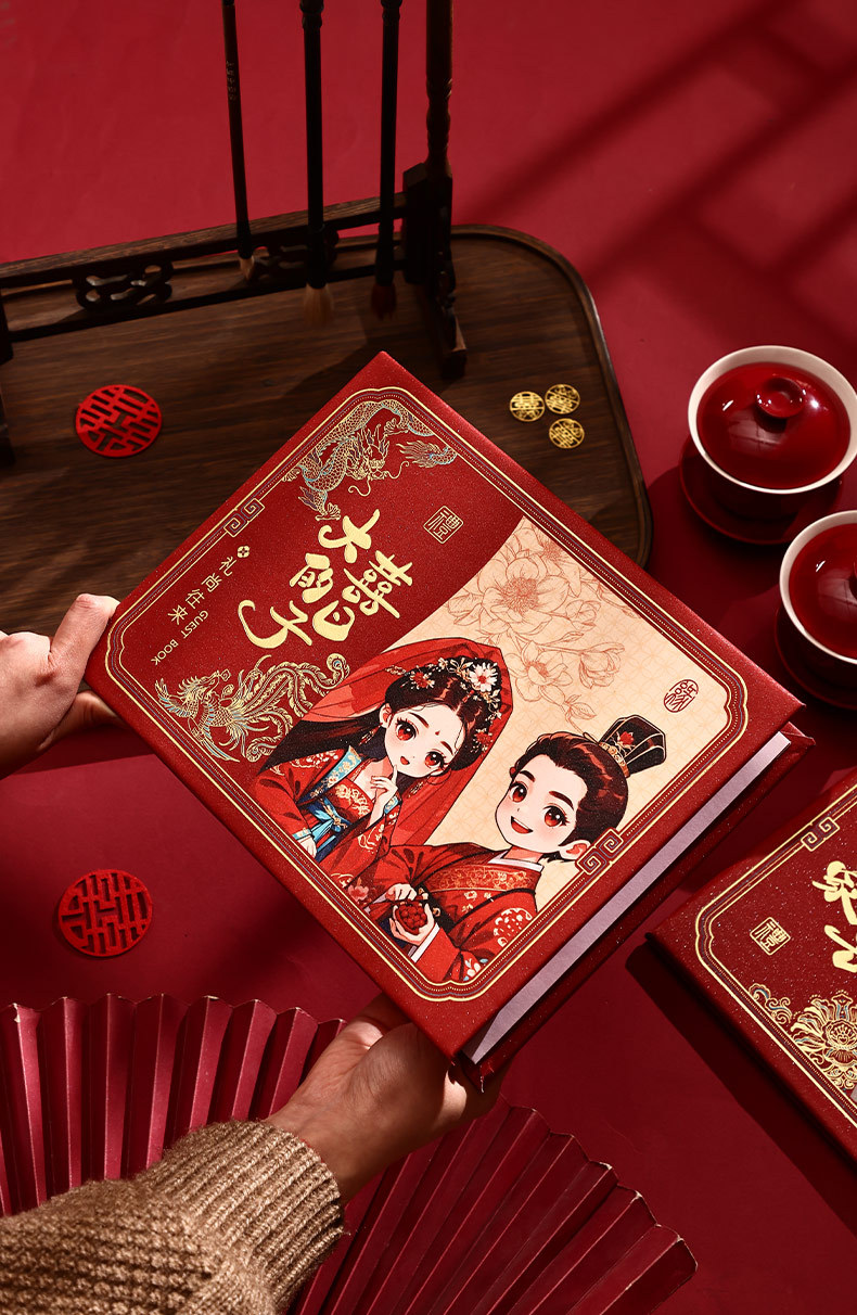 新款植绒硬面礼金本安格拉酒红创意高档婚礼签到册人情随份记账本