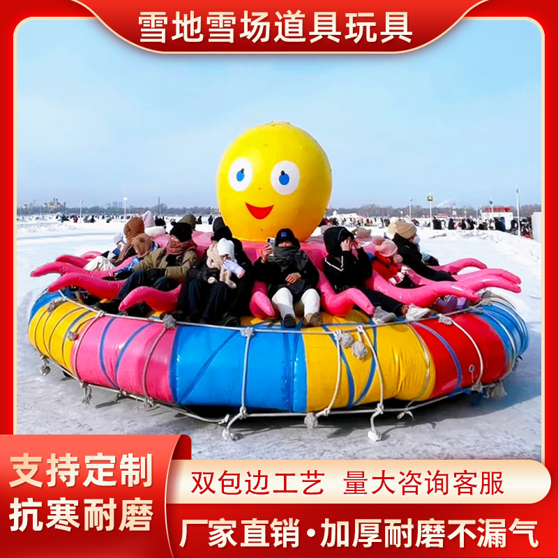 冬のスキー場のスノースポーツ器材バナナボートの耐寒性と厚い空気入れタコ八爪魚ボーリング道具