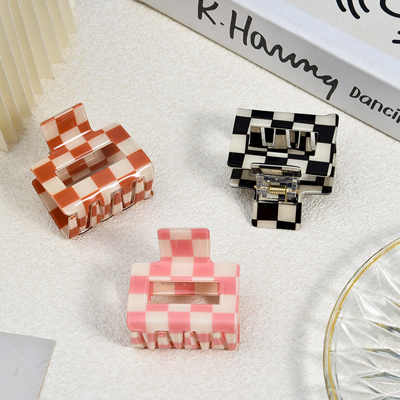 国境を越えた小さなクリップ韓国式シンプルな白黒格子前髪クリップ酢酸髪飾りファッショントップクリップ