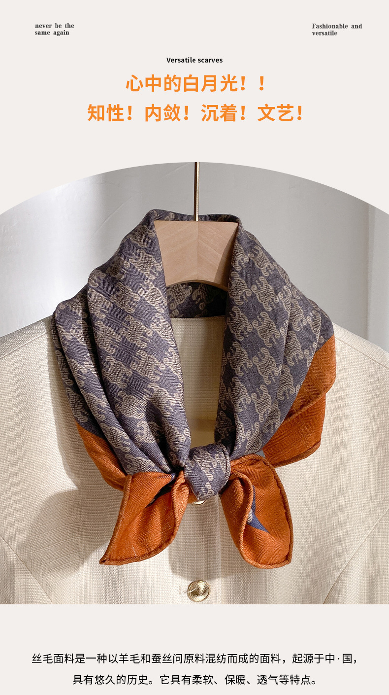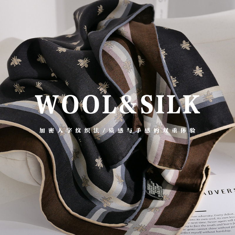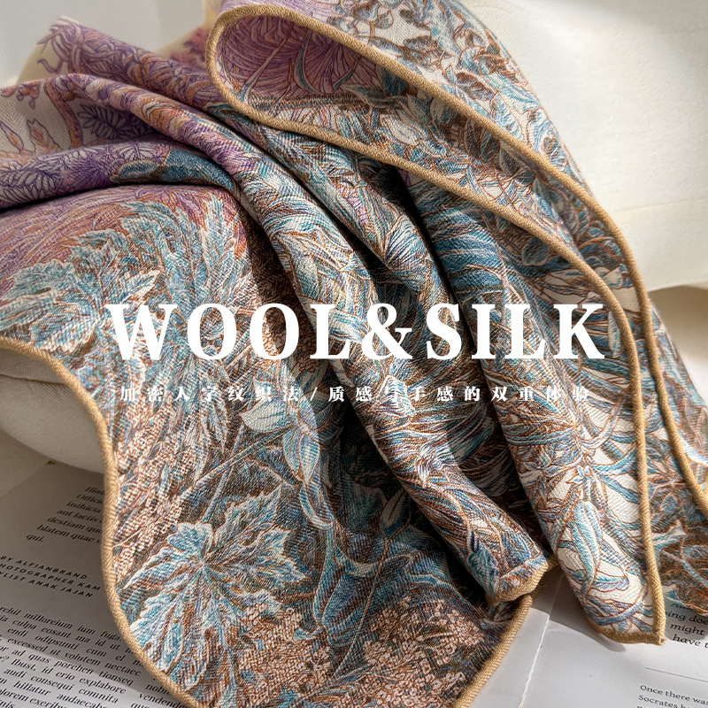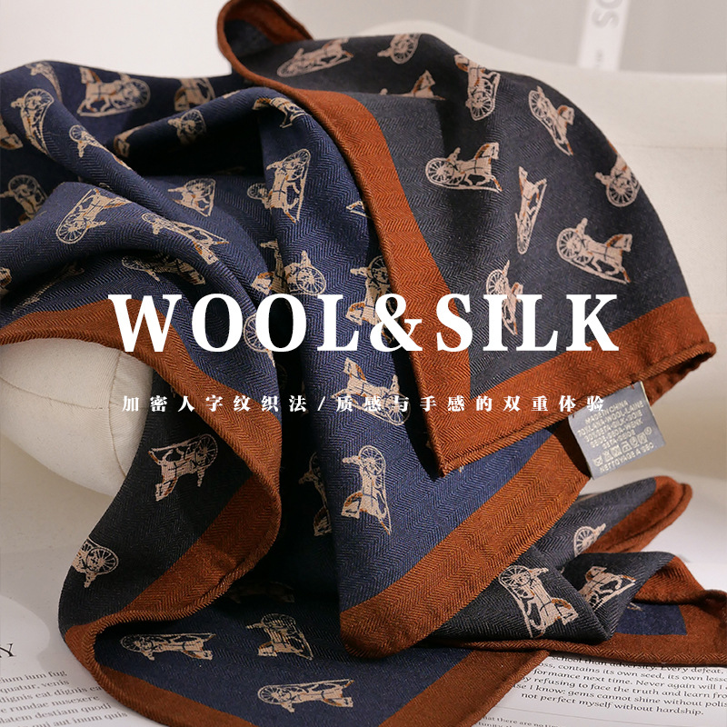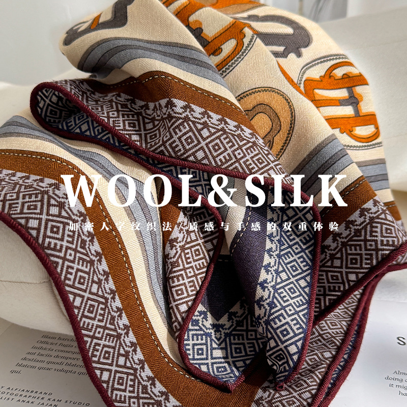 意大利老钱风!桑蚕丝真丝羊毛围巾丝巾女秋冬季高级感小方巾披肩
