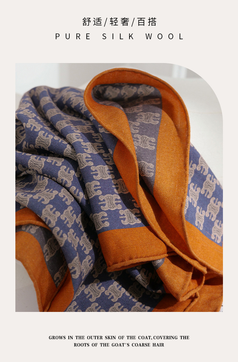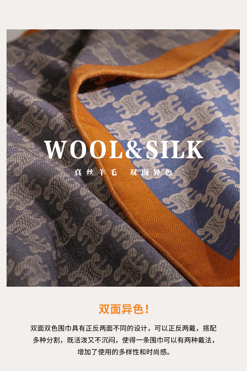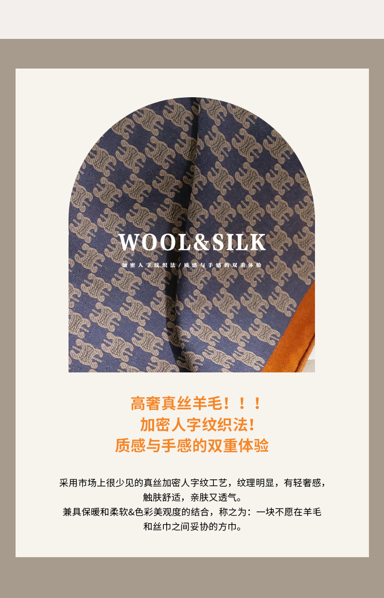 意大利老钱风!桑蚕丝真丝羊毛围巾丝巾女秋冬季高级感小方巾披肩