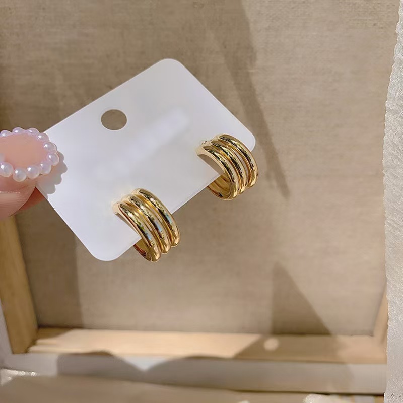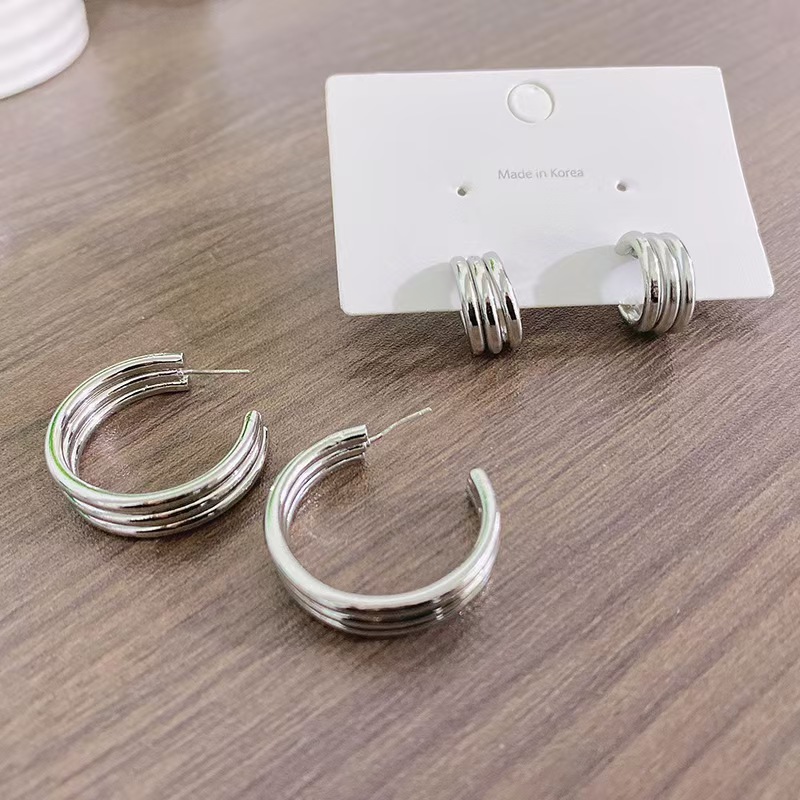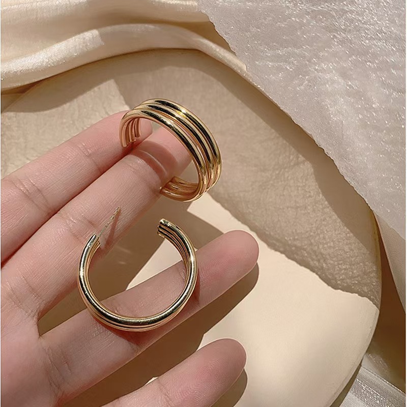 クロスボーダー ラウンドイヤリング レディース ストライプイヤリング 18Kゴールドメッキ 欧米風 インス風 シンプルイヤリング イヤーアクセサリー 2025年新作