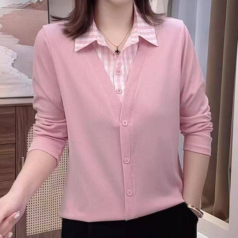 高档气质新款时尚假两件长袖显瘦翻领百搭洋气减龄衬衣打底衫卫衣