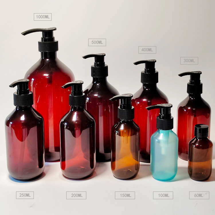 500ml300mlペットボトル ブラウングリーン化粧品詰め替えボトル 500mlプッシュ式シャンプー