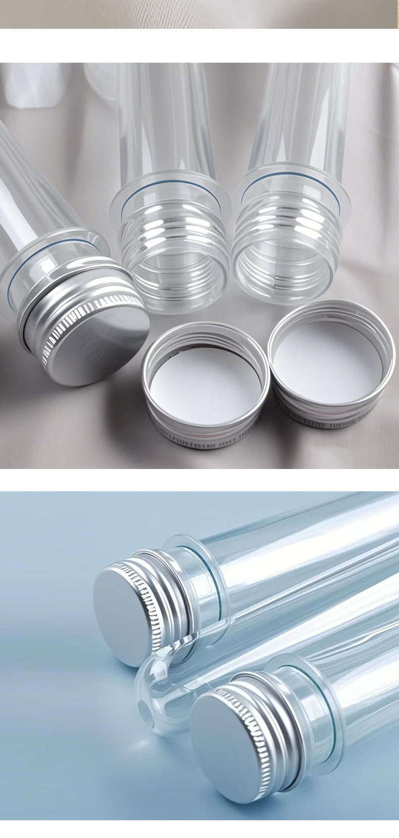 現物化粧品包装材petプラスチックマスクチューブ40ml円柱透明試験管アルミ蓋胚管分注瓶