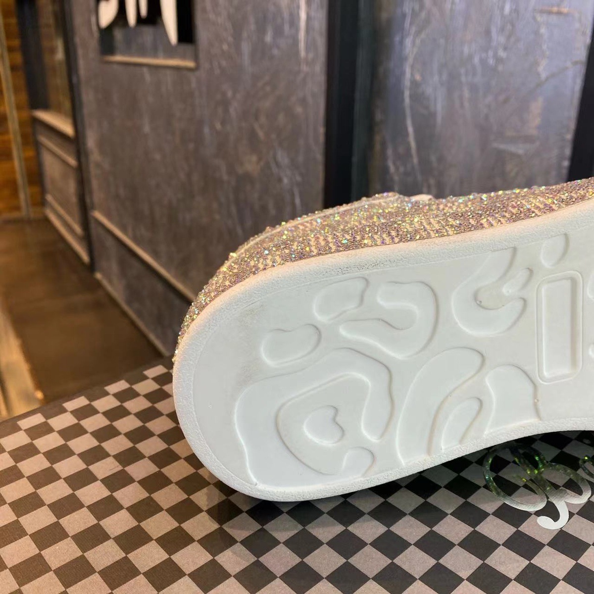 一脚蹬满钻老爹鞋2025新款低帮舒适透气网面包底增高百搭休闲男鞋