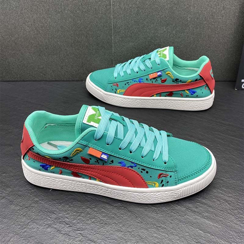 メンズシューズ春2025新しい通気性のあるキャンバスシューズトレンディな多用途スポーツとレジャーロートップシューズメンズプリントトレンディシューズ