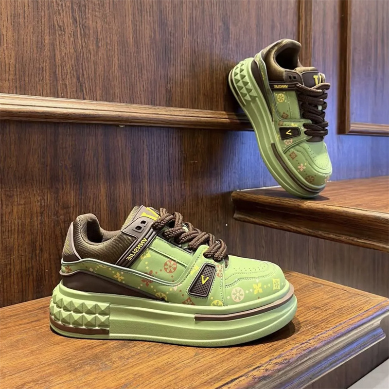 蛍光緑黒カジュアルファッション百合板靴アメリカ街頭太ったパン靴男女カップルカジュアル靴