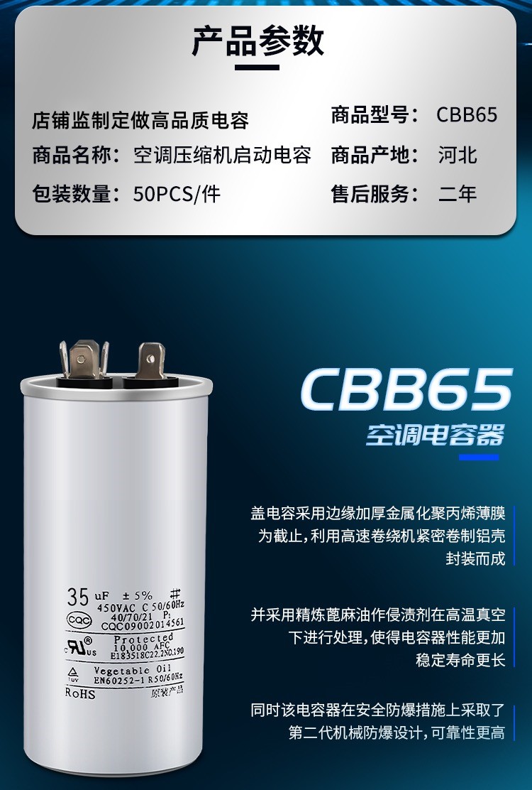 エアコンコンデンサ圧縮機コンデンサ35uf外機起動コンデンサ30uf/50ufc bb 65a 1.5匹防爆