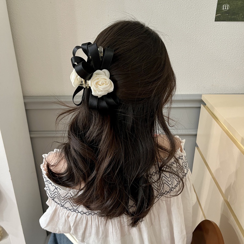 春に咲いているツバキの花はネットの赤い髪を挟んで女性の後頭部を挟んでサメのクリップのトップを挟んでアクセサリーを挟みます。