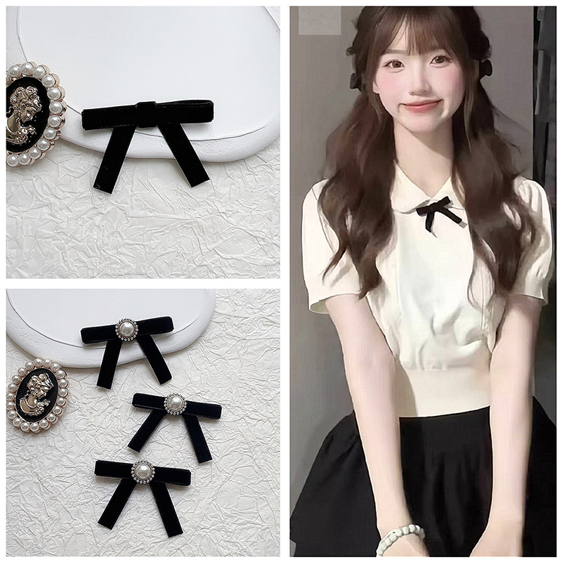 黒いベルベットの蝶結びのピンの小さいサイズの百合の気質の風のブローチは手作りのdiy服のアクセサリーの部品を結びます。
