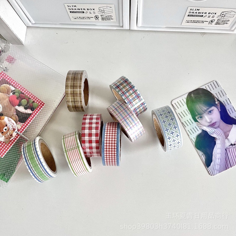 韓国yoyilstudio同梱和紙テープ韓系手帳装飾素材基礎格子縞手帳シール